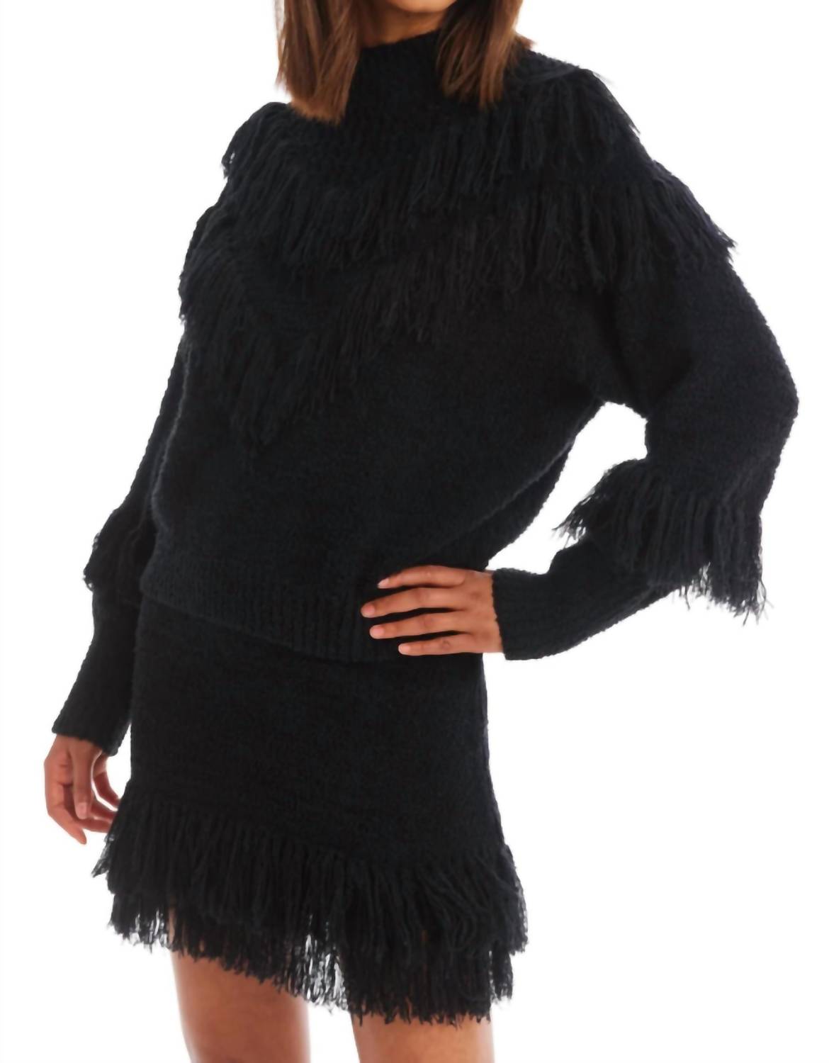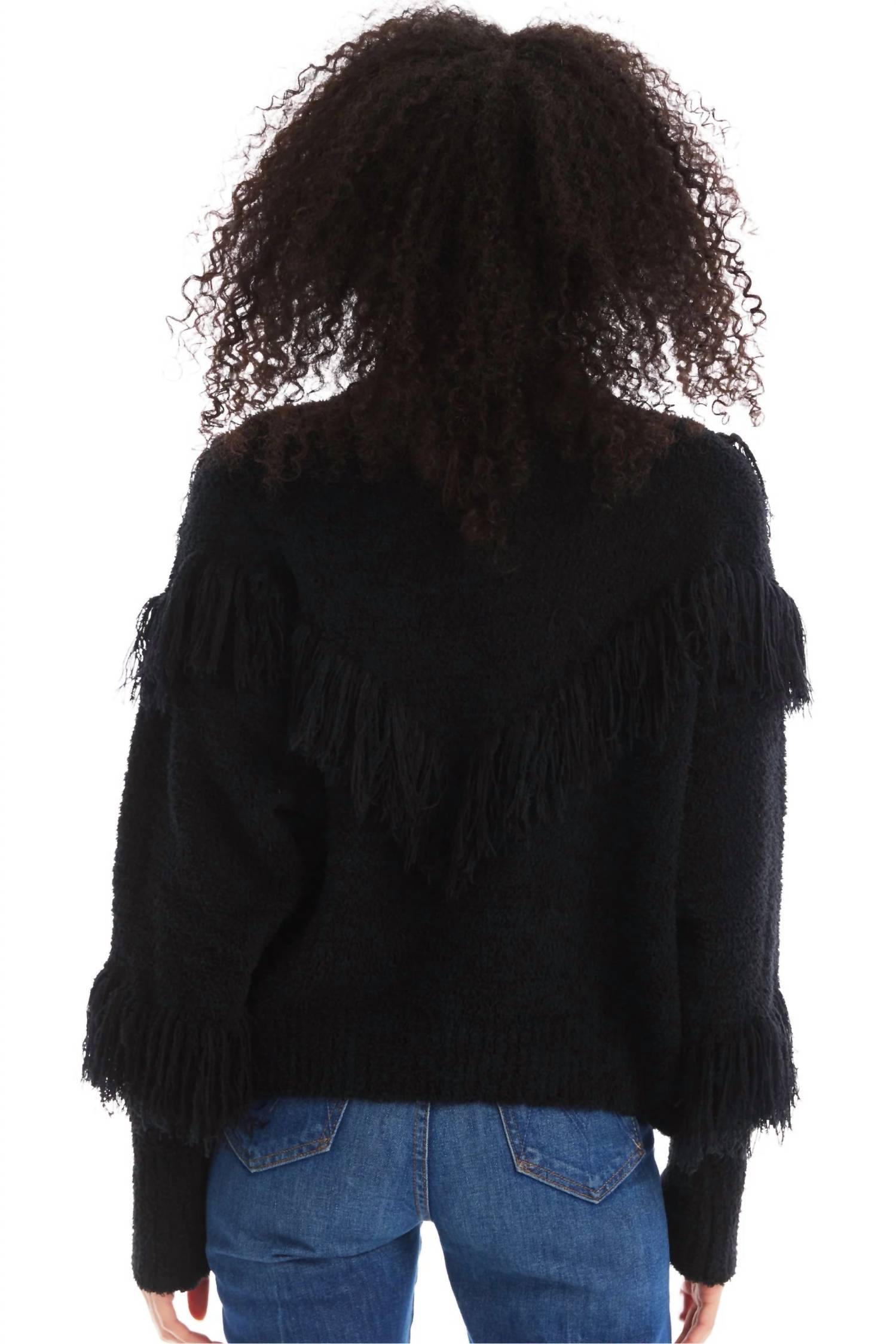 Modern design meets classic style. Boasts a high neckline, dropped shoulders, and long sleeves. Adorned with fun fringe detailing, all designed for a relaxed fit. With a Length of 20.25" and sleeves measuring 25.75". Crafted from 100% Polyester for a comfortable, durable wear. Features ribbed cuffs and a pull-on closure.