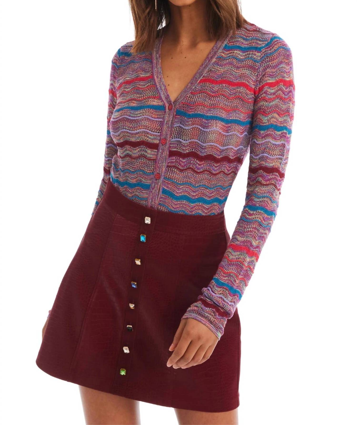 A classic fit that works just as good buttoned as it does left open. Embrace elegance with the Colleen Long Sleeve Cardigan by Allison New York in the vibrant Jewel Box hue. Crafted from 100% Rayon, this cardigan features a flattering V-neckline and button closure, creating a slightly sheer, slim fit perfect for any holiday occasion. With a garment length of 21.5", a bust measurement of 15", and sleeve length of 23", it offers a comfortable yet tailored look. Care: Dry clean only.