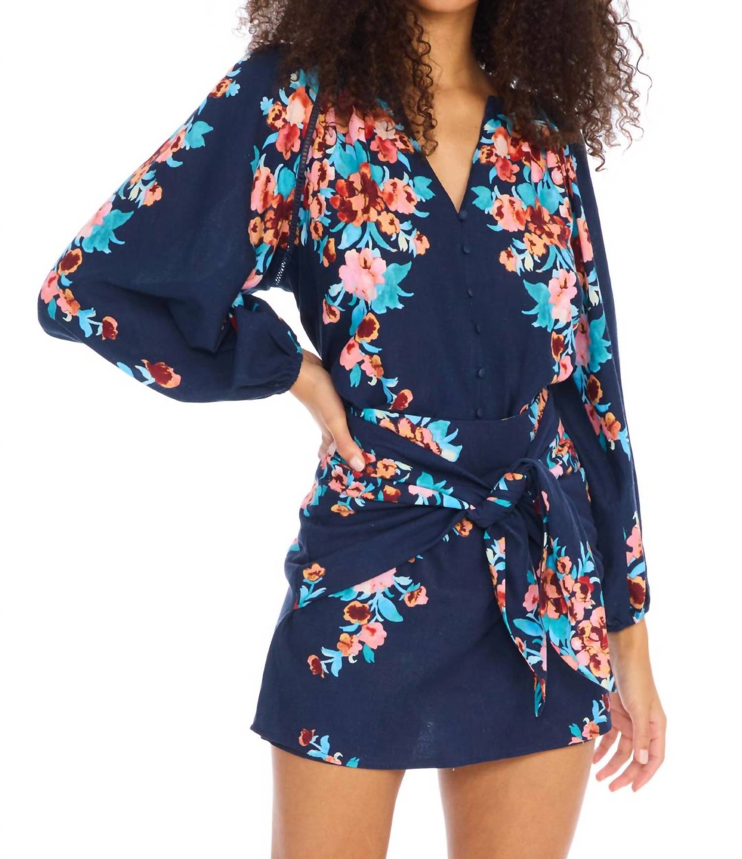 Tuck in your favorite tee for a more laid-back vibe. Elevate your summer wardrobe with the Janis Mini Skirt by ALLISON NEW YORK, featuring a chic navy floral pattern that embodies boho flair. This mini skirt is crafted from a soft blend of 55% viscose and 45% linen, providing both style and comfort for any vacation occasion. Designed for women, it offers a flattering fit without pockets to maintain sleek lines. Care instructions recommend hand washing and laying flat to dry, ensuring its beauty lasts throughout the sunny season.
