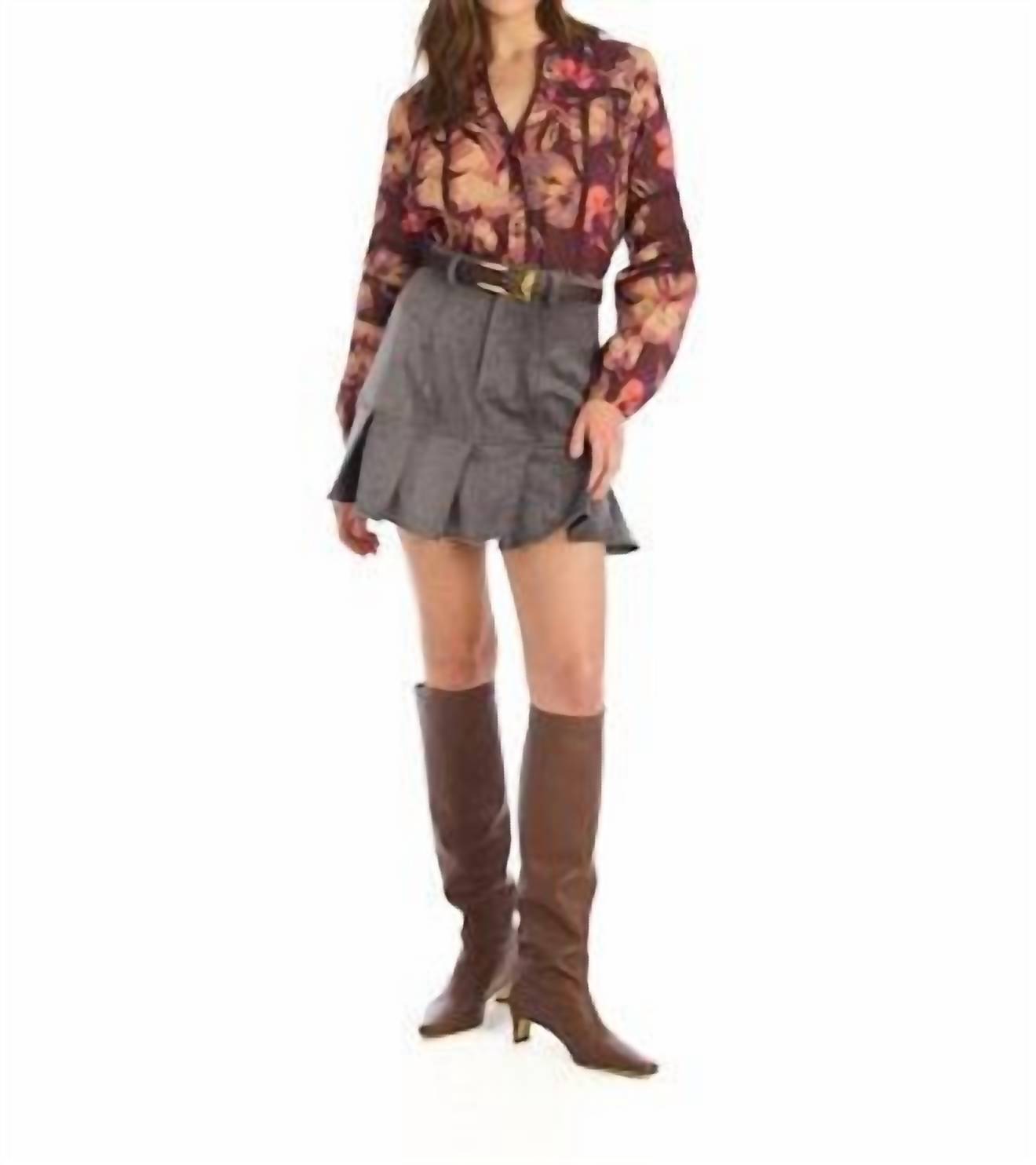 Pair this with your favorite jeans and slides for your next girls night out. This Maya Long Sleeve Blouse by Allison New York is a perfect addition to your boho chic wardrobe. Featuring an elegant V-neck and long sleeves, it comes in a charming brown floral pattern that suits any cocktail party occasion. The blouse is designed with a button closure for a classic touch. Care instructions include hand washing to maintain its delicate appeal.