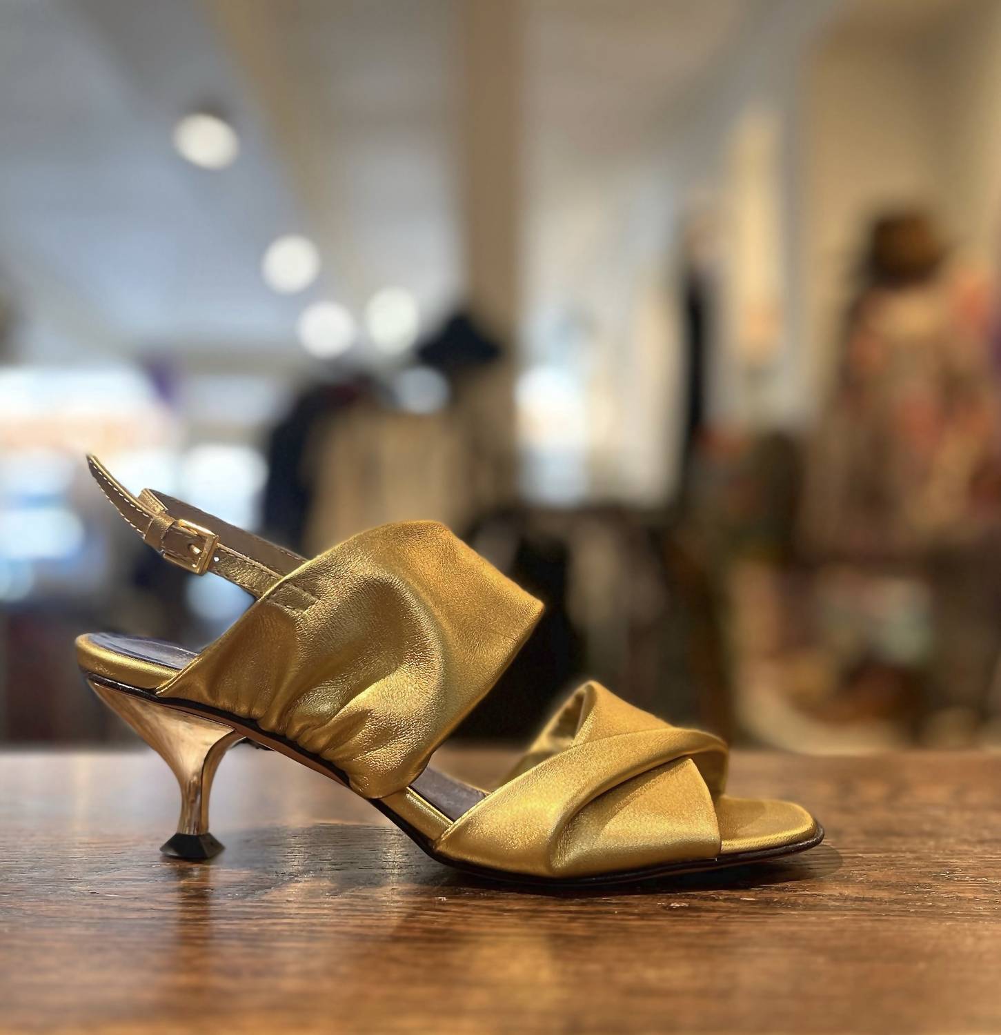 Buckle closure. 2 band straps with twisted detail. Open toe. Made in Italy.