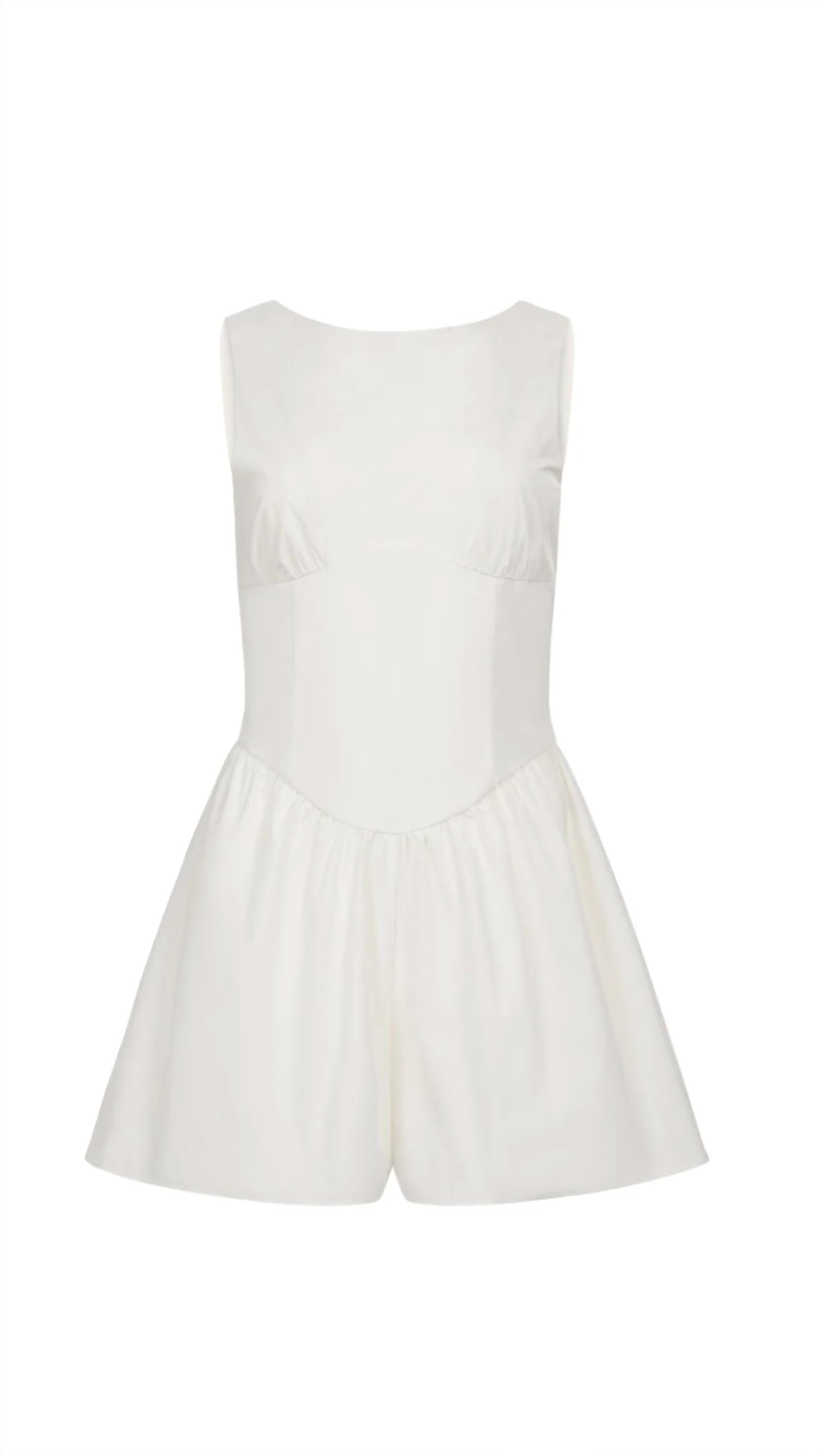 It doesn't take much for this one piece to look effortlessly cool. Add some statement jewelry to dress it up, or throw on some sneakers for a more casual vibe. Introducing the Bellini Boatneck Romper by Amanda Uprichard, a minimalist summer staple in elegant white. This chic piece boasts a boatneck design with practical side pockets and smocked sides for added comfort and style. Made from 100% polyester with a concealed back zipper and hook and eye closure, it is perfect for a dinner party or Easter celebration. Care: Dry clean only.