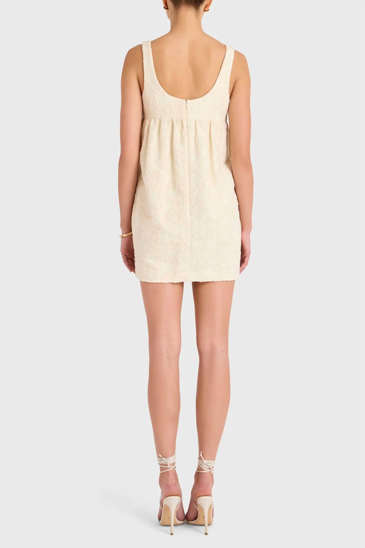 A short and breezy dress for those warmer days. The Bello Scoopneck Mini Dress by Amanda Uprichard embodies a charming babydoll design, perfect for date nights or drinks with friends. This sleeveless mini empire dress showcases a scoop neck and includes convenient sideseam pockets. Crafted from a cotton blend with a composition of 46% Cotton, 36% Polyester, 16% Viscose, and 2% Spandex, it features an invisible back zipper with a hook and eye closure. The dress is lined with 100% cotton, exuding sophistication in beige, and requires dry cleaning to maintain its delicate structure.