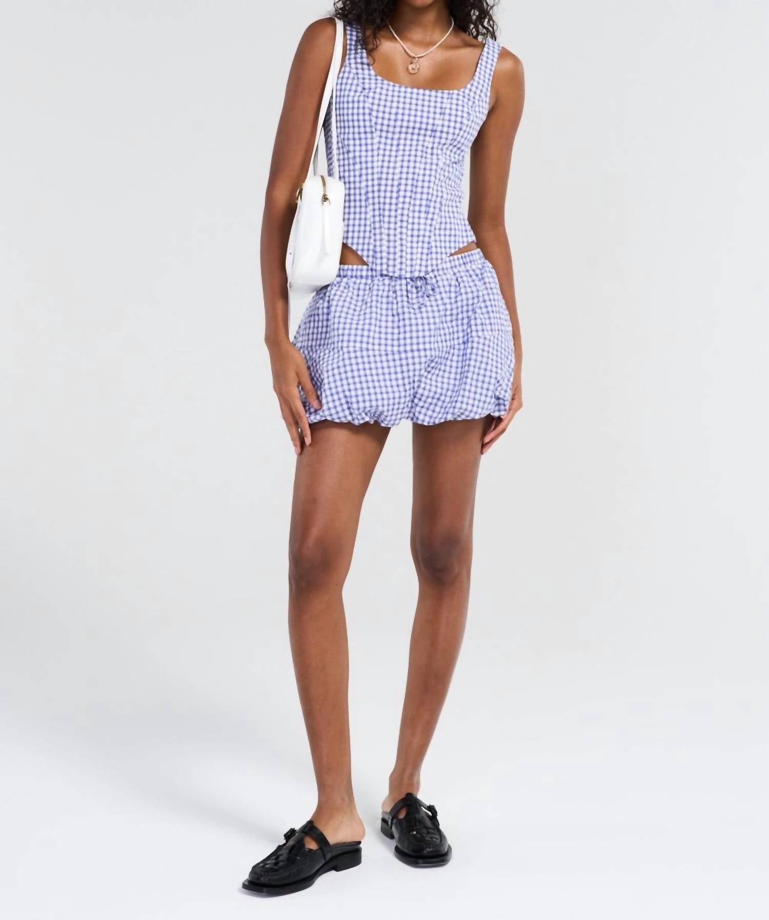 The cutest skort that combines style and functionality. Sweet and effortless, this mini skirt features a classic gingham print with a playful bubble hem and built-in shorts for added comfort. Designed with an elasticated waistband and functional drawstring, it’s crafted from a lightweight, non-stretch cotton blend and fully lined for a polished finish. True to size. Dry clean only. Imported. 65% Cotton, 35% Polyester.