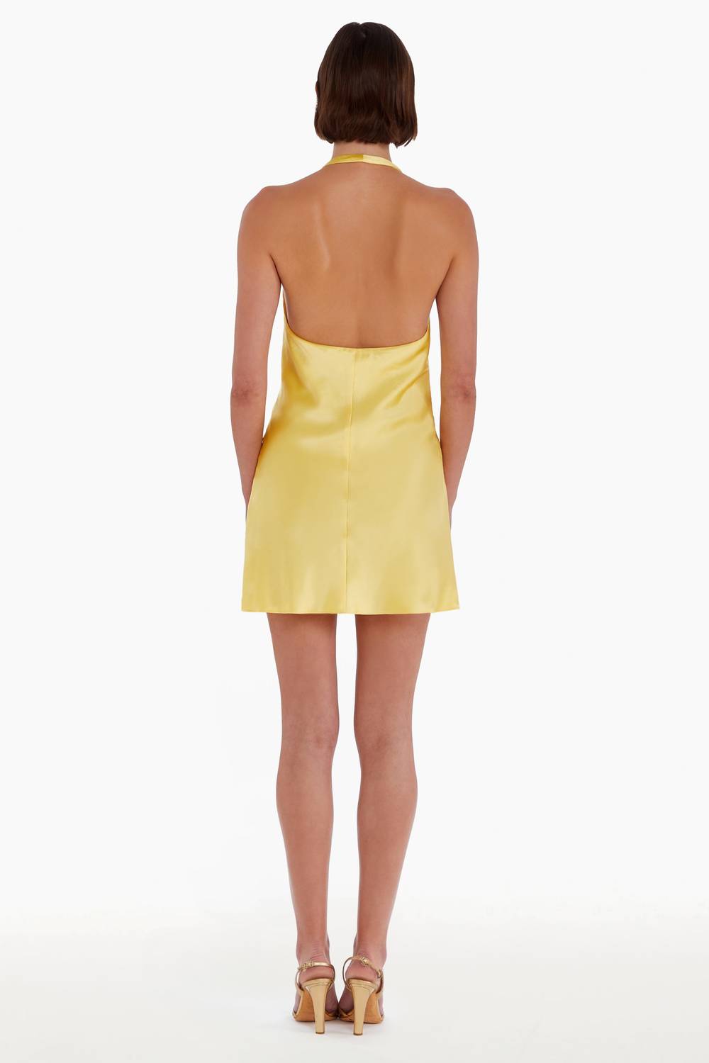 A short and breezy dress for those warmer days. Introducing the Bondi Mini Dress by Amanda Uprichard, a chic and versatile piece perfect for your holiday festivities. This sleeveless sheath dress features a stylish halter neck and flattering V-neckline, ensuring you make an impression at any Thanksgiving gathering. Crafted from 100% silk, the dress is pull-on and showcases a bias cut for a sleek silhouette. Care instructions recommend dry cleaning to maintain its luxe appeal.