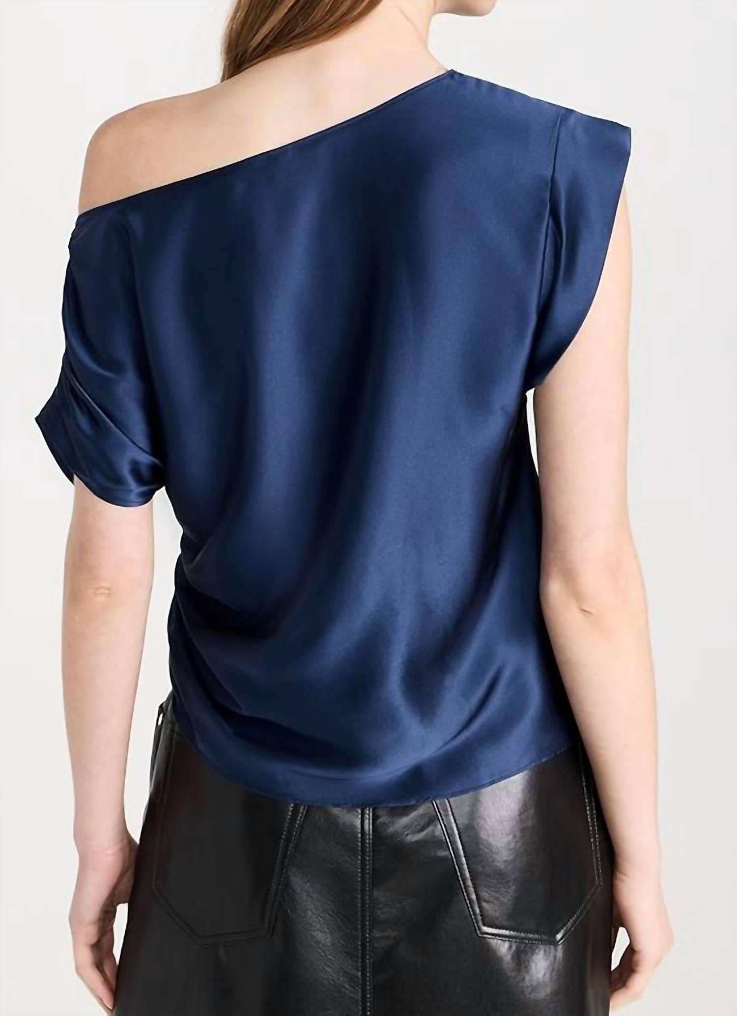 The short sleeve tee you'll want in every color. This lightweight, non-stretch charmeuse top features a refined round neckline and short sleeves for an effortlessly elegant look. Thoughtful ruching at the shoulder and side adds a touch of texture and flattering drape, making it a versatile piece perfect for both casual and dressy occasions. Dry clean. 100% Silk.