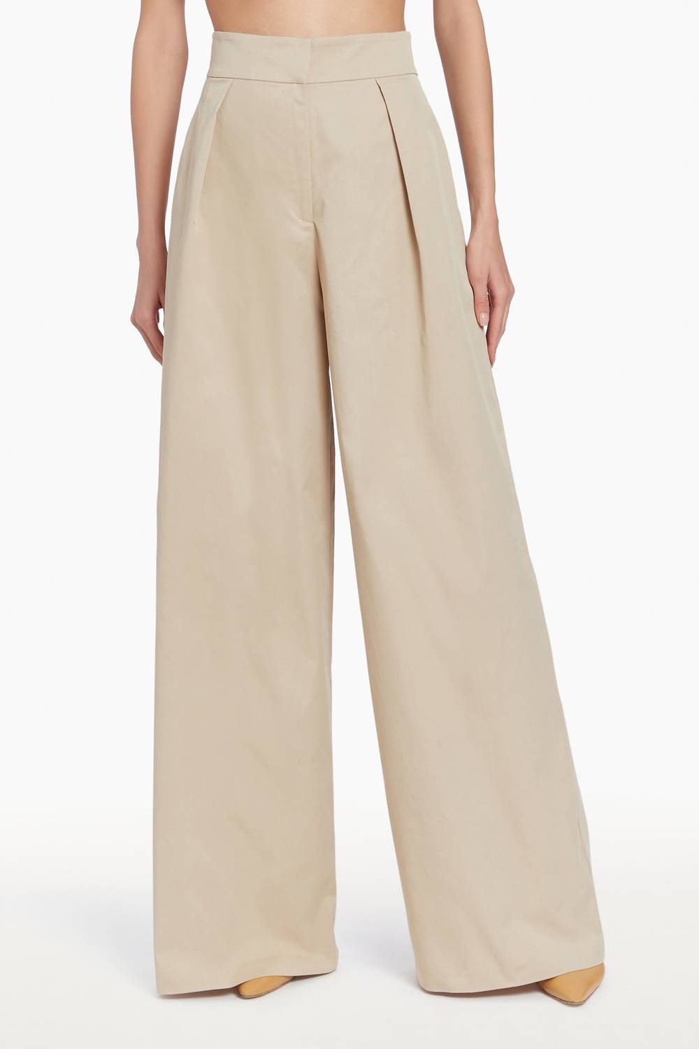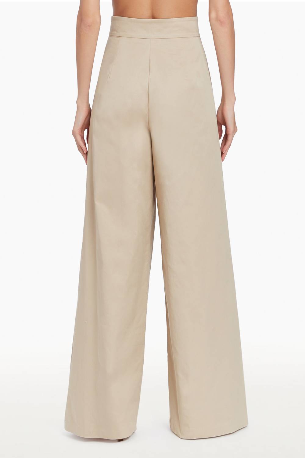 These high-waisted, wide-leg pants feature a sleek zipper and hook-and-bar closure at the center front, enhanced with flattering front pleats and practical side pockets. 65% Cotton, 35% Polyester for the self and 100% Polyester lining ensures a comfortable fit. Machine wash cold on a gentle cycle and line dry.