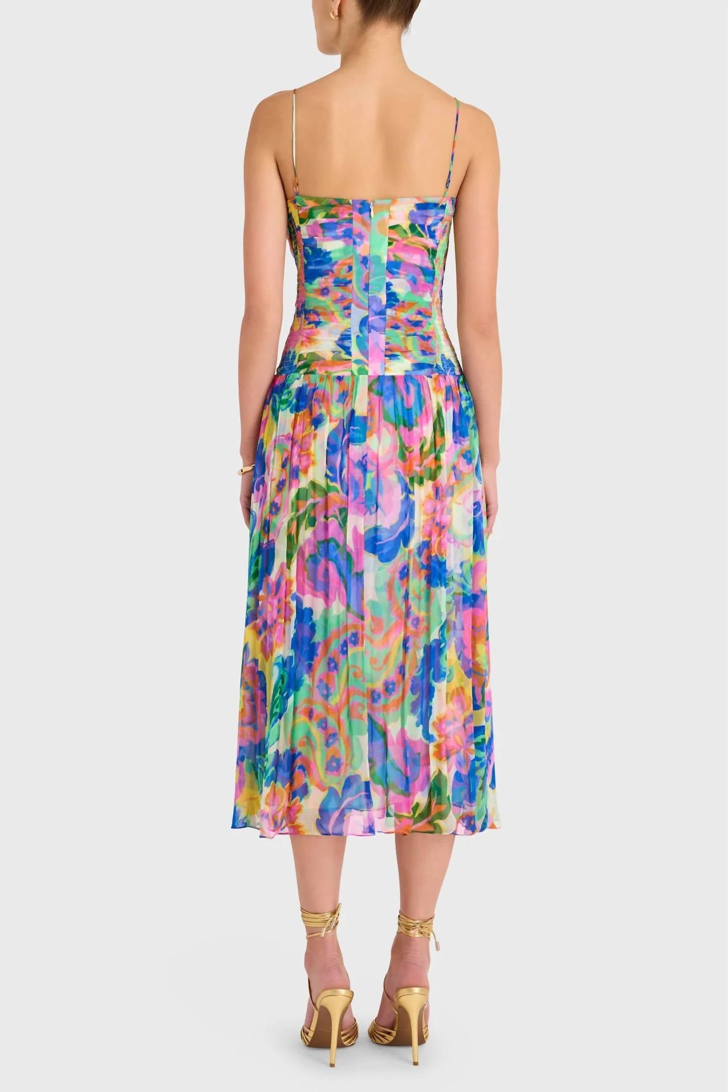 Comfortable and cute, this casual day dress has it all. Chic choice for summer outings and holiday parties. Floral print dress features adjustable spaghetti straps for a perfect fit and showcases a fit and flare silhouette that enhances your feminine charm. Crafted from luxurious viscose. Includes a zip closure for easy wear and is fully lined for comfort. Dry clean only. Ideal for stealing the spotlight at garden parties or wedding receptions.