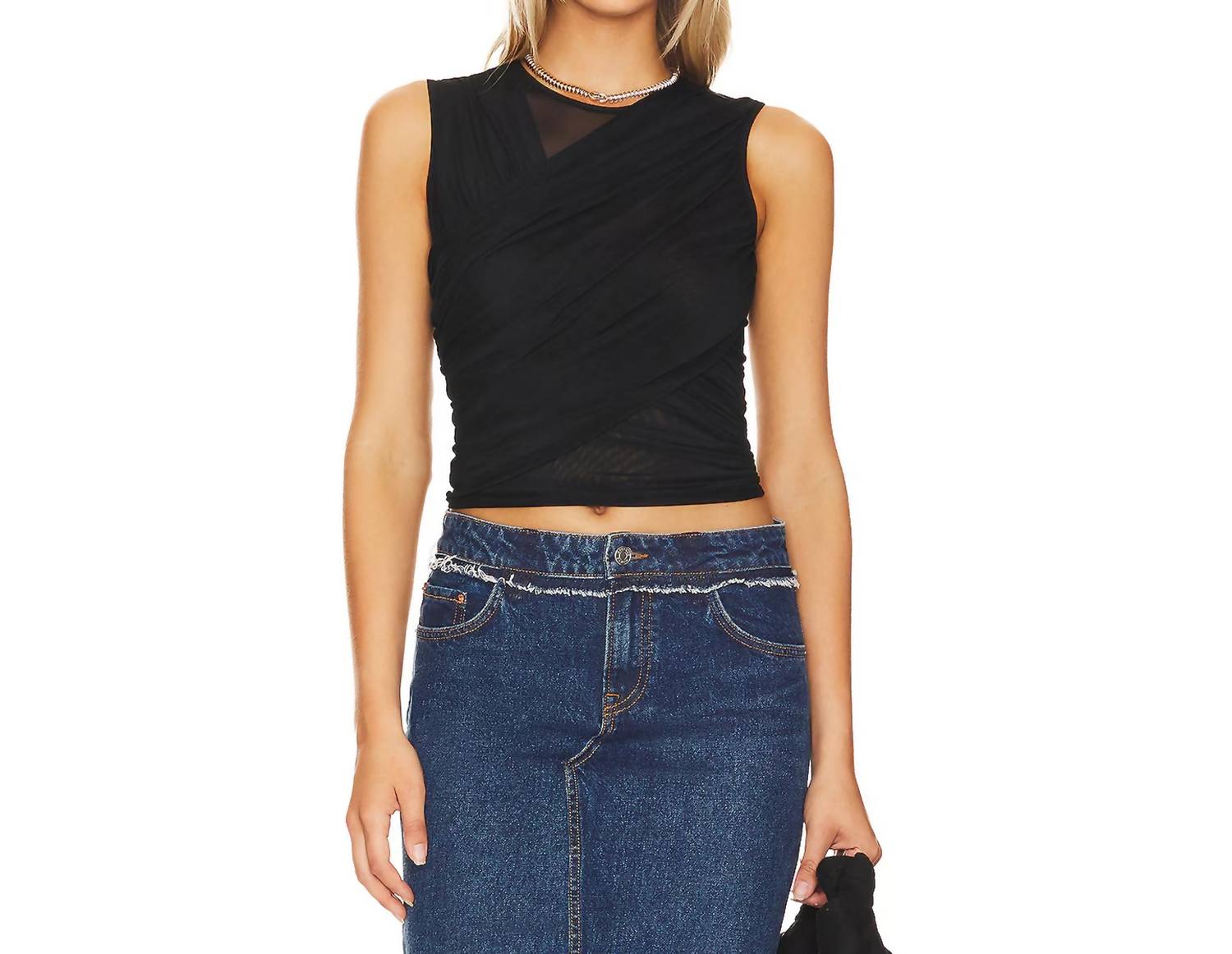 Pair this with your favorite jeans and slides for your next girls night out. 95% polyester, 5% spandex Made in China Machine wash Ruched mesh front