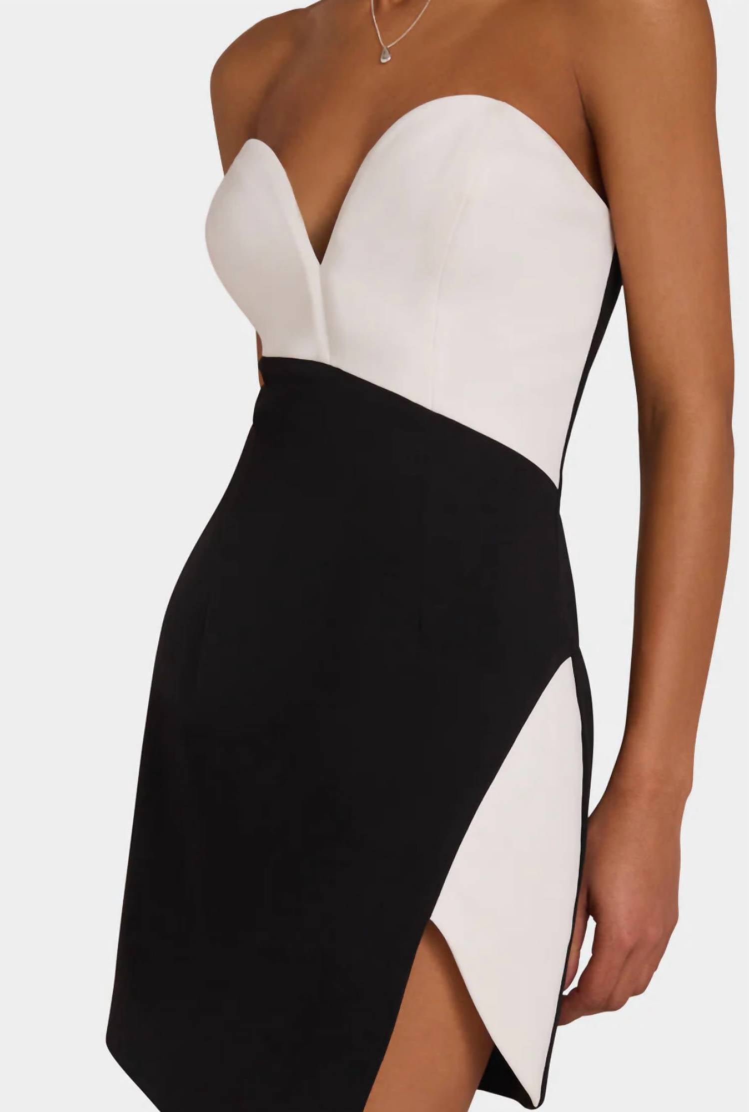 Elevate your wardrobe with the Soirée Mini Dress by Amanda Uprichard, a perfect blend of sophistication and playful charm. This strapless dress features a chic color-blocked design with a sweetheart neckline and a stylish side slit. Crafted from 100% Polyester, it measures 27.9 inches in length and originates from China. It ensures a flawless fit with a convenient zip closure and requires dry cleaning for optimal maintenance.