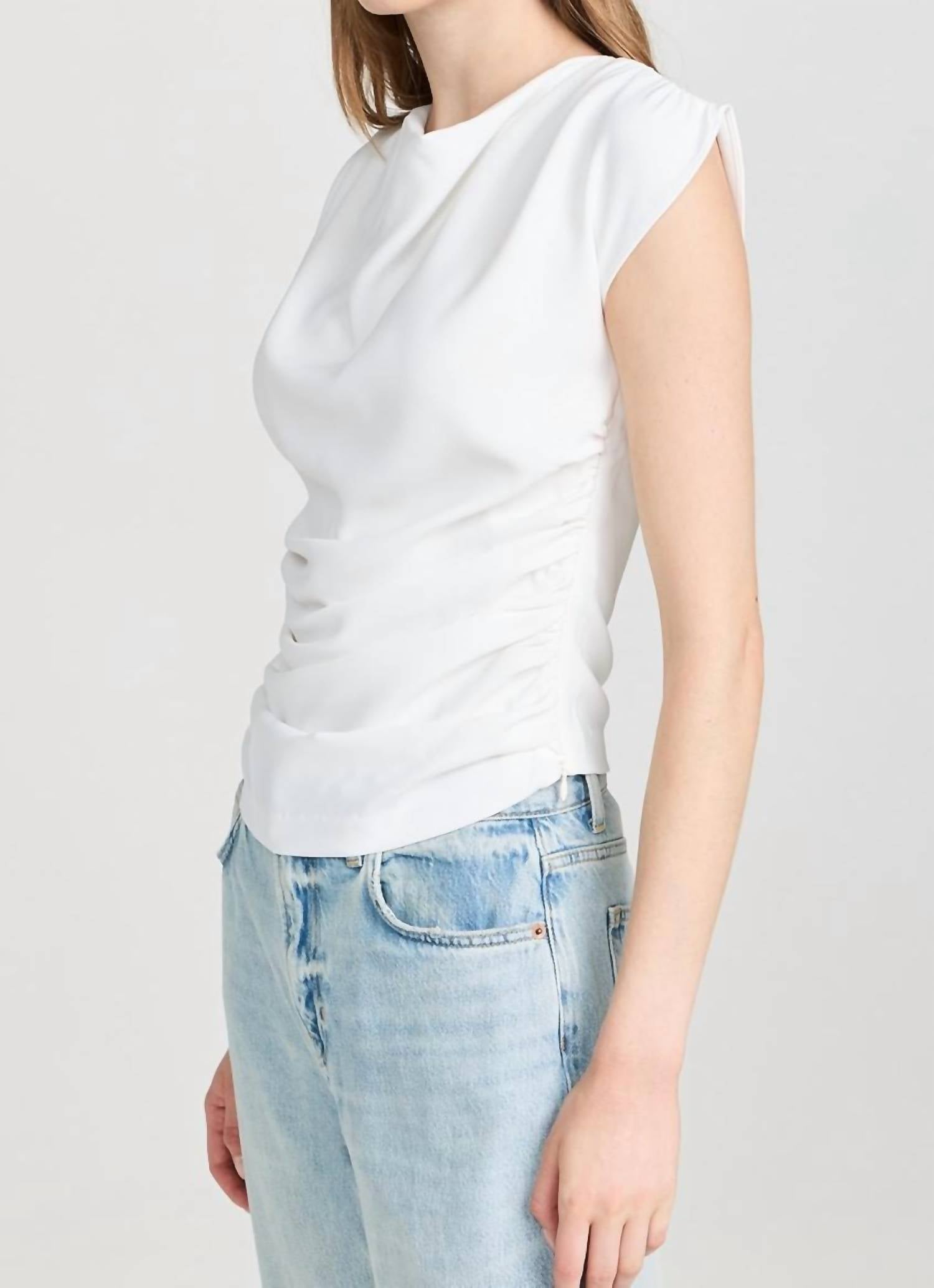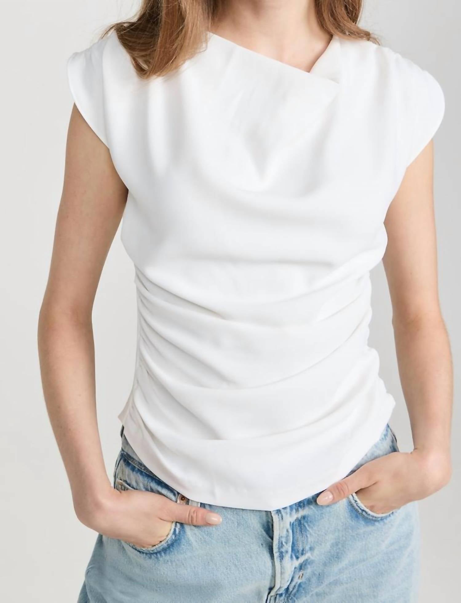 A timeless blouse that will never go out of style. This Fersia Top features a cowl neck, ruched sides, and cap sleeves. Made from high-quality 100% polyester, it offers a flattering fit and easy pull-on style, transitioning seamlessly from day to night.