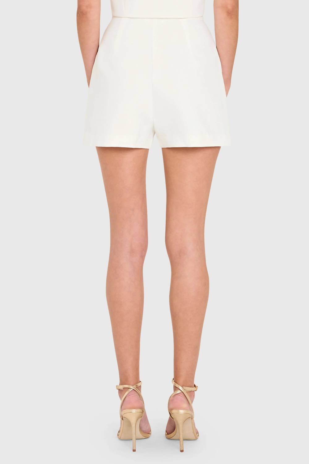 Tuck your favorite tee into these high-waist shorts for a more casual-cool feel. Discover the Reeves Mid-rise Shorts by Amanda Uprichard, a minimalist essential in classic white designed for women seeking style and comfort. Crafted from 100% polyester, these high-waisted shorts feature a chic wide-leg cut and a fully lined interior. Originating from an unspecified country, they close with a zip fly and hook & bar, while side pockets add a practical touch. Care includes machine wash on a gentle cycle and line drying, making them perfect for city outings and bistro lunches.