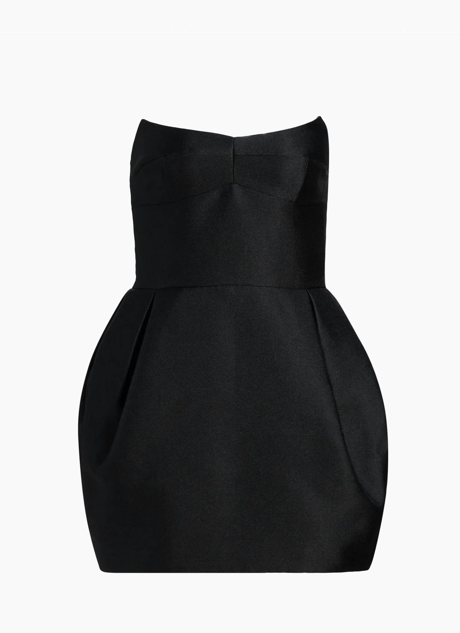 The kind of easy and flattering dress you'll be reaching for all season long. Elevate your evening event look with the Amanda Uprichard Bowery Dress, a striking piece in timeless black. This strapless mini dress features a fitted bodice paired with a dynamic tulip skirt, creating a dramatic fit-and-flare silhouette. Crafted from 100% polyester with a lining of 95% polyester and 5% elastane, it offers a comfortable yet elegant fit. Closure: Concealed back zip. Care: Dry clean. Length: About 33.5" from shoulder to hem. The model is 5'10" and wears a US size Small. Imported.