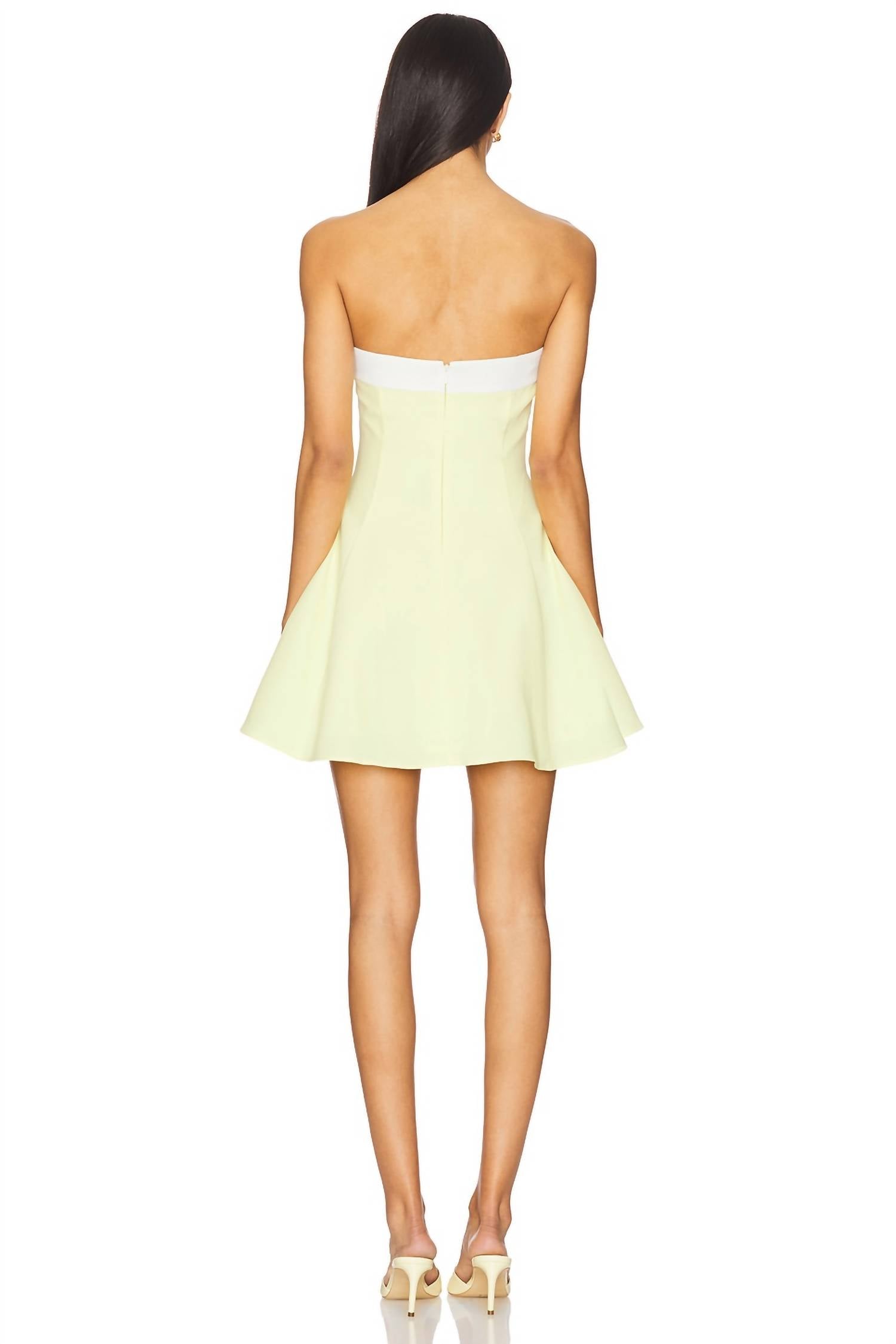 A strapless dress so versatile you can dress it up with heels or wedges, or give off a more casual vibe with flats. Elevate your holiday party look with the Kerielle Dress by Amanda Uprichard, a striking piece in Provence Ivory. This strapless mini dress features an off-the-shoulder neckline with contrast detailing and a flared A-line skirt. Made from 100% polyester, it is fully lined for comfort and secures with a center back zip closure. Care: Dry clean only. Perfect for minimalist trends, this dress is designed for summer gatherings.