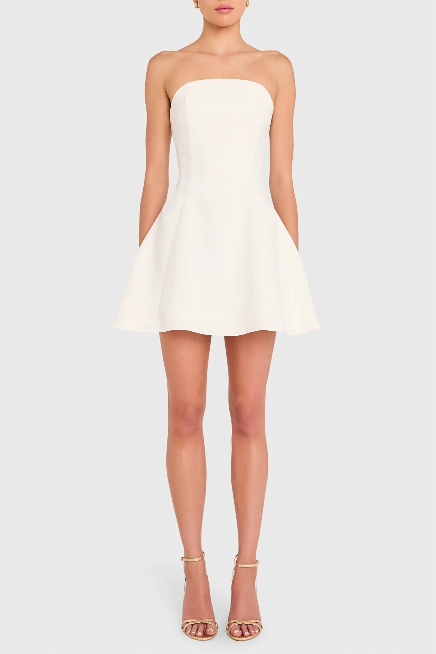 Step into sophistication with the Women's Romilly Dress by Amanda Uprichard, an exquisite piece in vibrant Parakeet designed to captivate. This strapless mini dress, crafted from 100% Polyester, features an off-the-shoulder curved neckline and a fit-and-flare silhouette, adding just the right amount of volume. Closure: Zip closure. Care: Dry clean only. Ideal for wedding receptions and upscale summer soirées, this dress ensures a stunning entrance every time. Model Allie, standing at 5'7", wears an extra small in this timeless design.