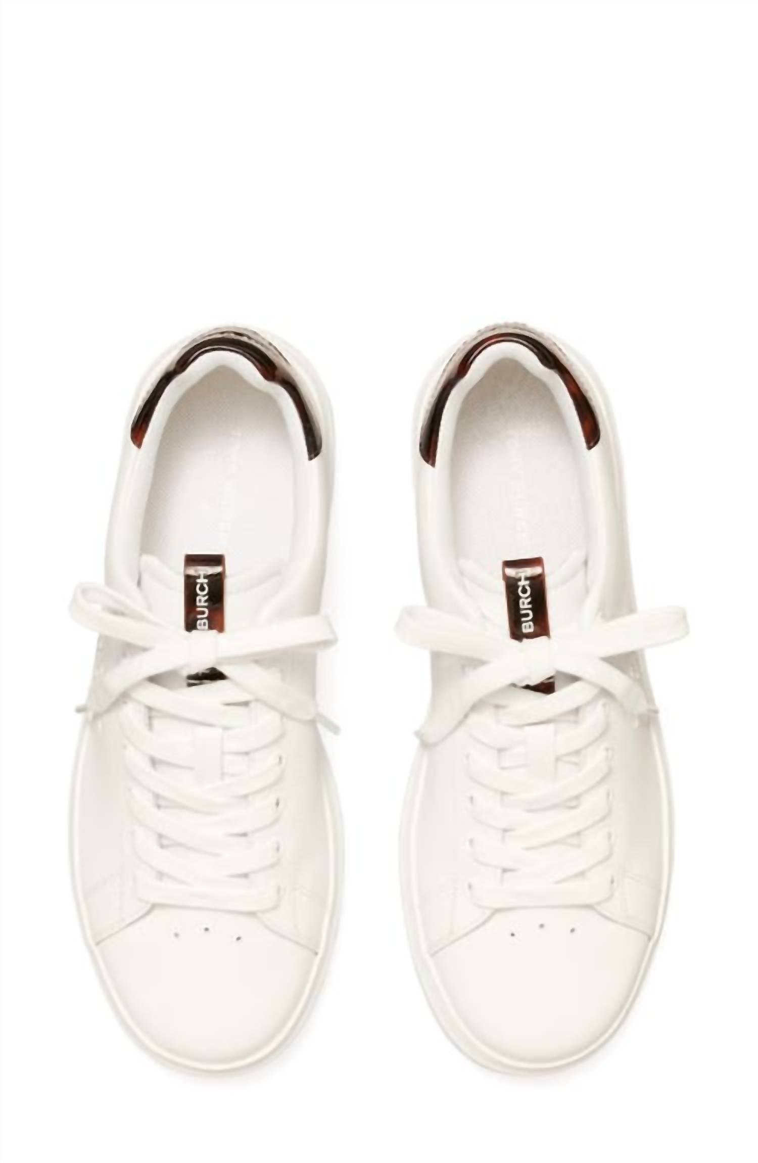 Cute, functional, and comfortable. These sneakers check all the boxes. Step out in style with the Women's Double T Howell Court Sneaker by TORY BURCH, crafted for both fashion and comfort. Made from premium leather with a durable rubber sole, these sneakers feature a pull-on closure for easy wear. The round toe and flat heel design offer a classic silhouette, perfect for everyday wear. Presented in a chic Titanium White/Creta color, these imported sneakers are your new go-to for a relaxed yet sophisticated look.