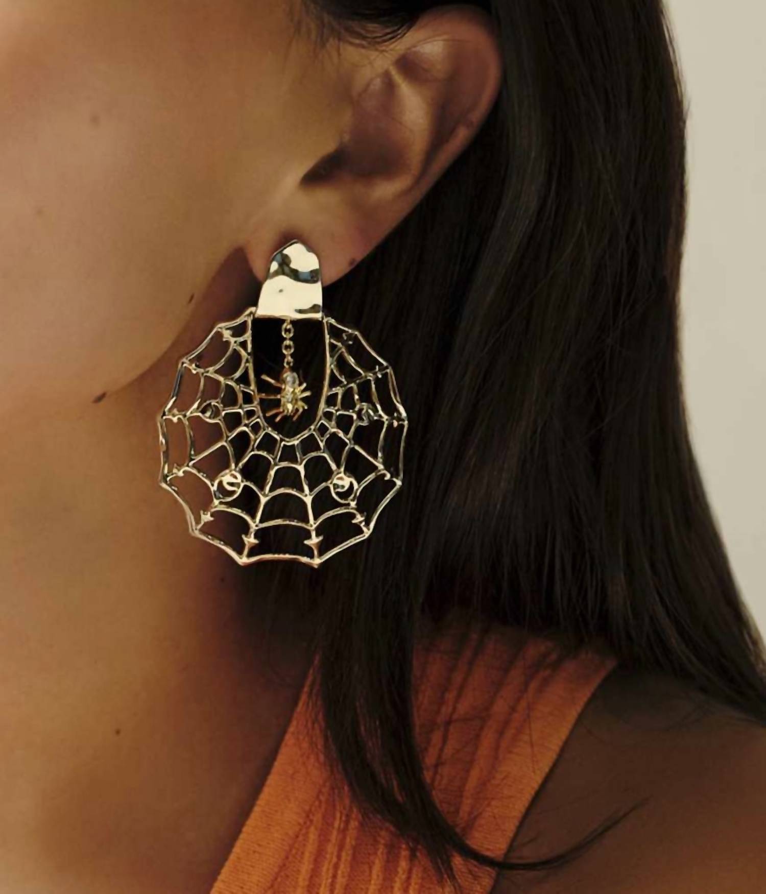 Easy and elegant earrings to complement any outfit. Unveil your bold style with the Spiderweb Statement Earrings by Kendra Scott, crafted in eye-catching 14k Yellow Gold Over Brass. Decorated with a spooky spiderweb design, these earrings feature white CZ round brilliant stones and dainty spider accents. Closure: Ear Post. Dimensions: 2.4" L x 1.99" W. Perfect for those who dare to shine.