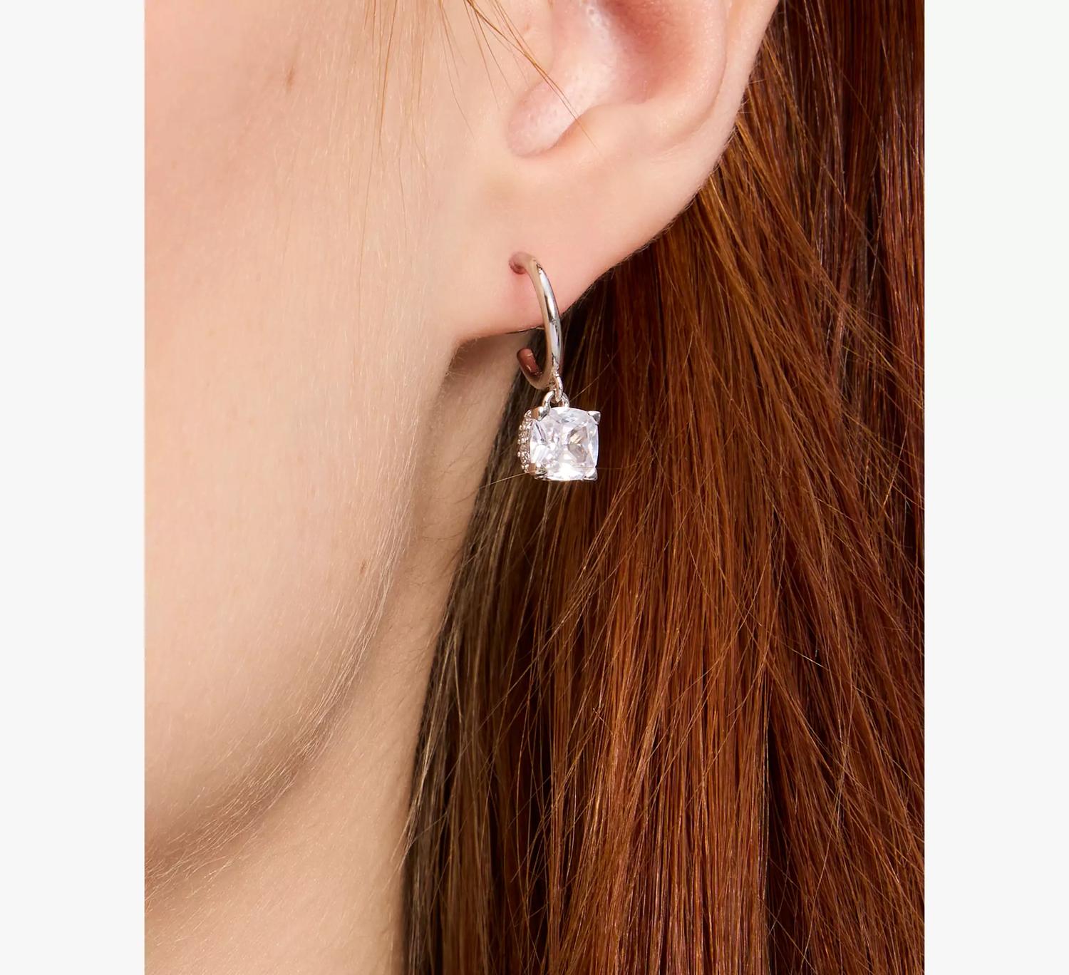 Easy and elegant earrings to complement any outfit. Embrace elegance with the Little Luxuries 6mm Square Huggies by Kate Spade, a stunning addition to your jewelry collection. Crafted from plated metal and adorned with radiant-shaped cubic zirconia, these earrings gleam in a sophisticated silver finish. Measuring at 0.8" in length and 0.25" in width, they feature signature spade ear clutch backs for secure wear. These fashion earrings seamlessly blend luxury and style for any occasion.