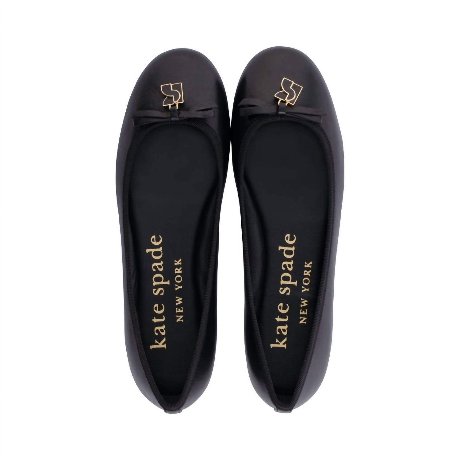 Meet the Women's Dakota Charm Leather Flats by Kate Spade, a striking fusion of style and comfort. These black flats are crafted from smooth leather with a luxurious leather lining, highlighted by a signature bold K logo. With a low heel of 0.25 inches, they offer effortless sophistication and draw inspiration from the iconic Dakota bags. Made to elevate your everyday ensemble, these flats are imported and feature a classic round toe design.