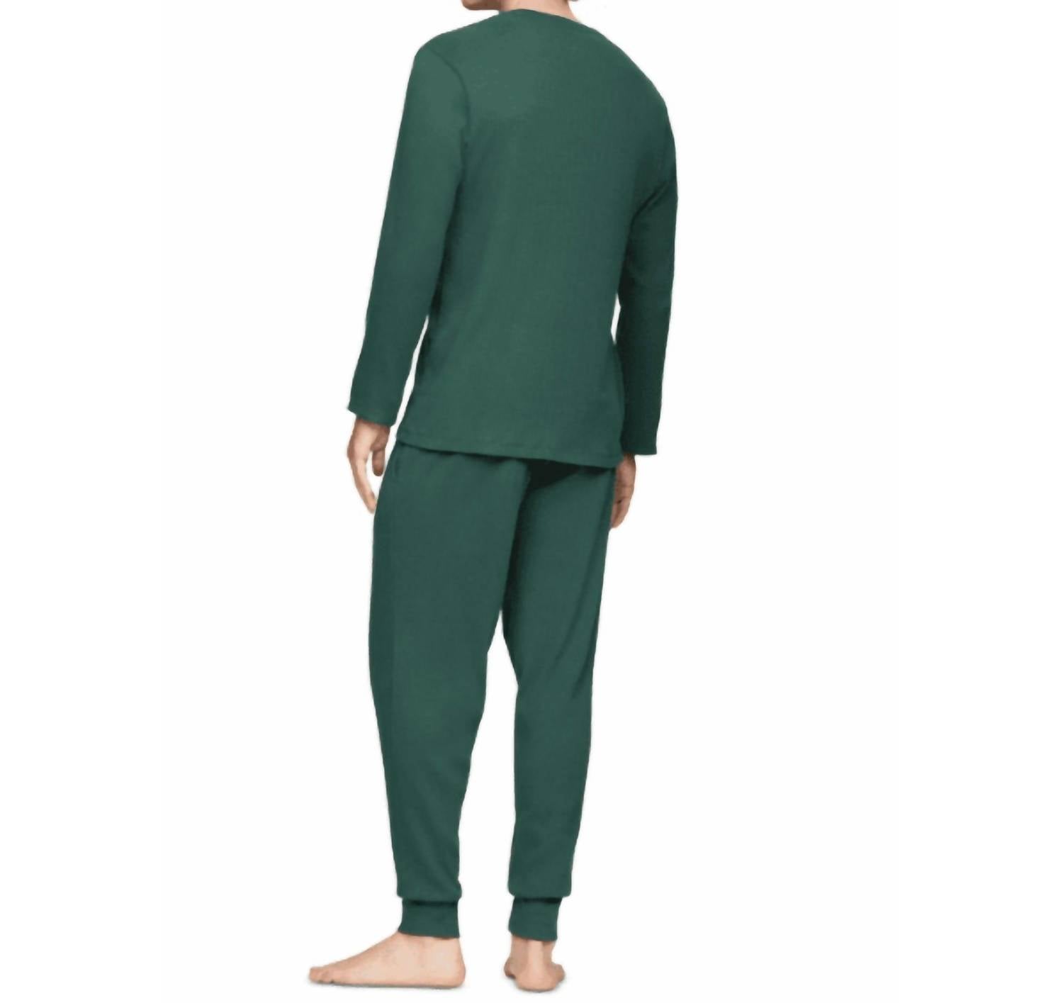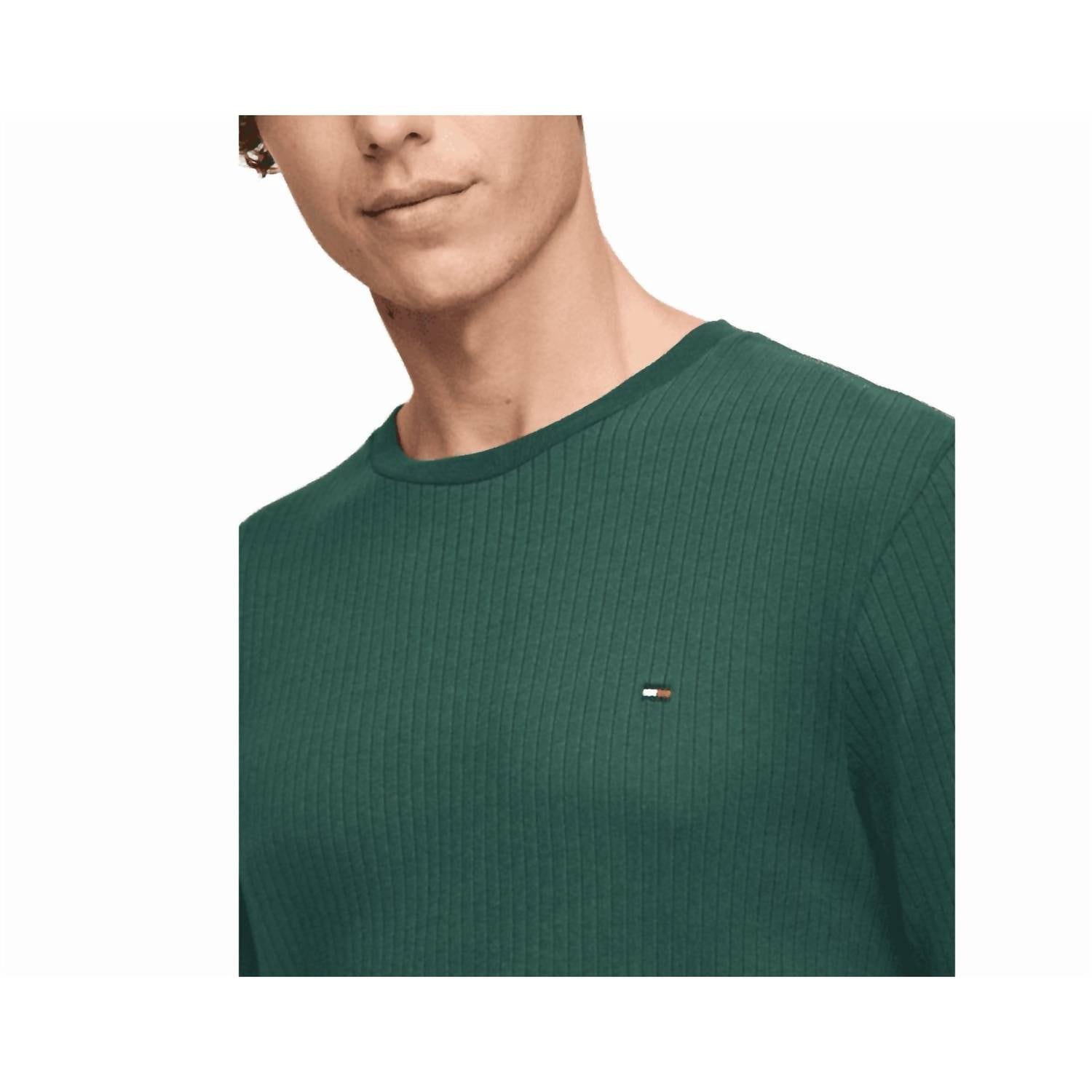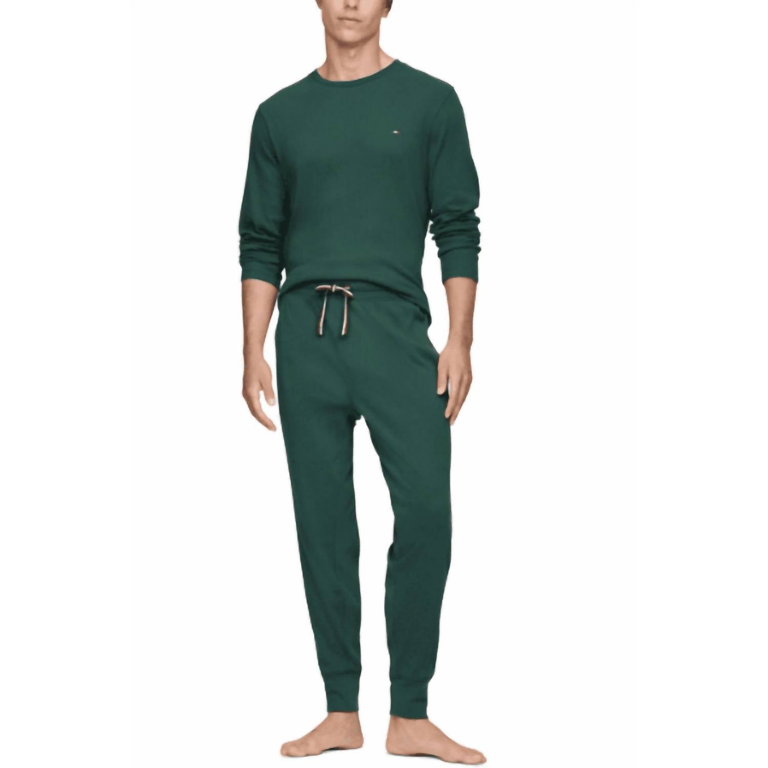 Elevate your loungewear with the Waffle-knit Long-sleeve Shirt by Tommy Hilfiger, designed for comfortable elegance in a soothing spruce hue. This long-sleeve shirt features a classic fit with a textured waffle knit and an iconic flag logo. Made from a cozy cotton-blend composition of 60% cotton and 40% polyester, it ensures warmth and breathability. Closure: Pull-on. Care: Machine wash for easy maintenance, perfect for travel and minimalist style aficionados.