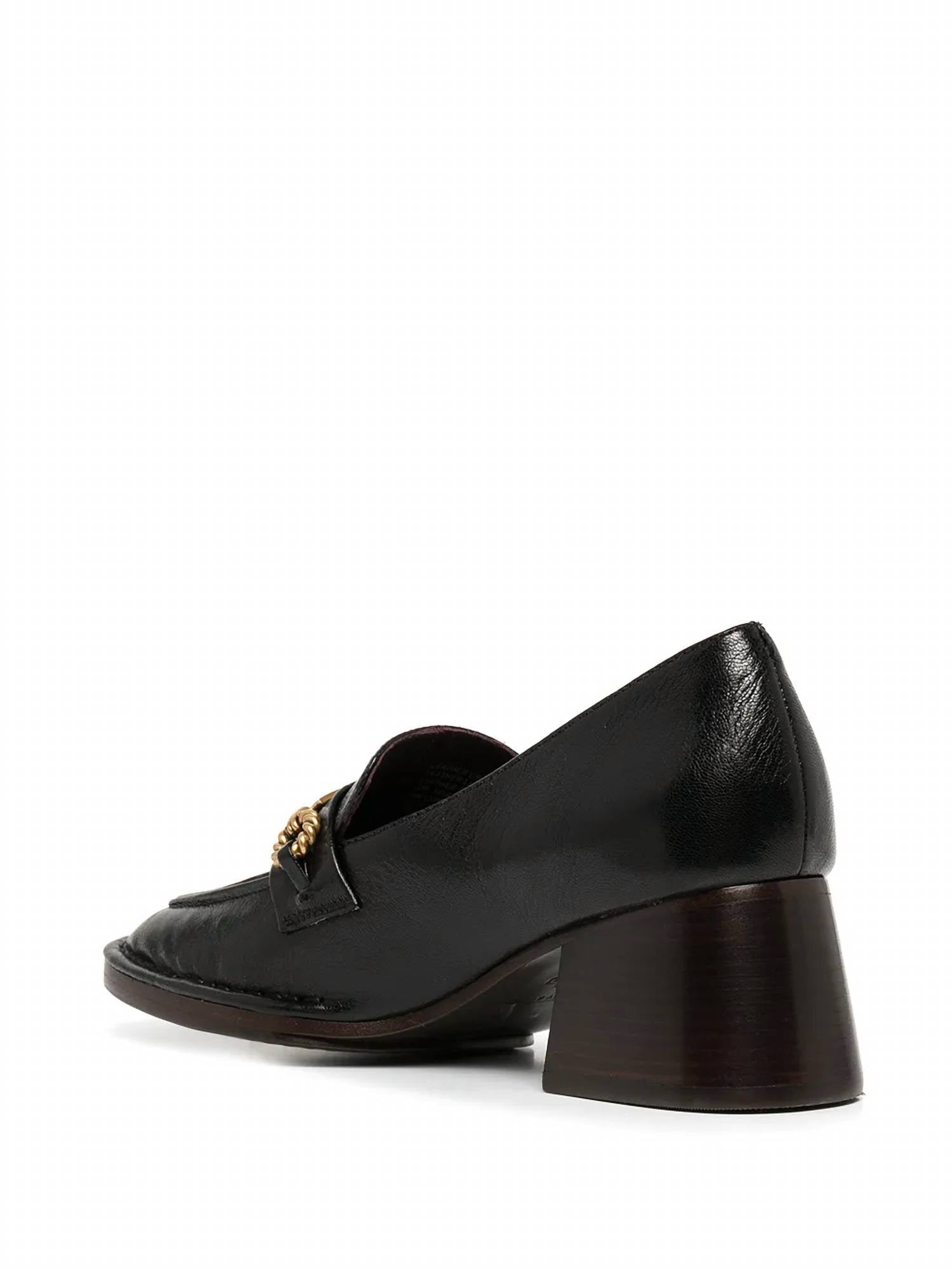 A preppy yet feminine take on the classic loafer. Introducing the Women's Perrine Heel Loafers by TORY BURCH, where sophisticated style meets quiet luxury. Crafted from 100% leather in a timeless black tone, these imported loafers feature a gold-toned hardware detail and a rubber sole. The block heel measures a comfortable 2.25 inches (55mm), complemented by a chic square toe design, making them perfect for an evening event or Thanksgiving celebration. With their elegant yet sturdy structure, these loafers are an ideal choice for the fall season.