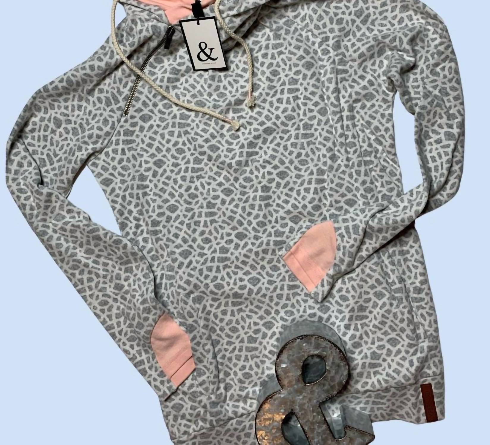 Cooler temps call for layering and we love this adorable sweatshirt for all the obvious reasons. The Something Different Double Hooded Sweatshirt by AMPERSAND AVE is a standout piece in a Grey Abstract print, featuring long sleeves with comfortable thumbholes. Made from a soft and stretchy cotton blend (95% cotton, 5% spandex), this hoodie promises a cozy fit with a stylish double hood design—grey on the outside and pink on the inside. The pull-on closure, convenient pockets, and natural drawstring add functionality, while the quote "Today Is a Fresh Start" inside the collar is an inspiring touch. Ideal for those who appreciate both comfort and unique design, this sweatshirt fits long and slim; consider sizing up for a looser fit.