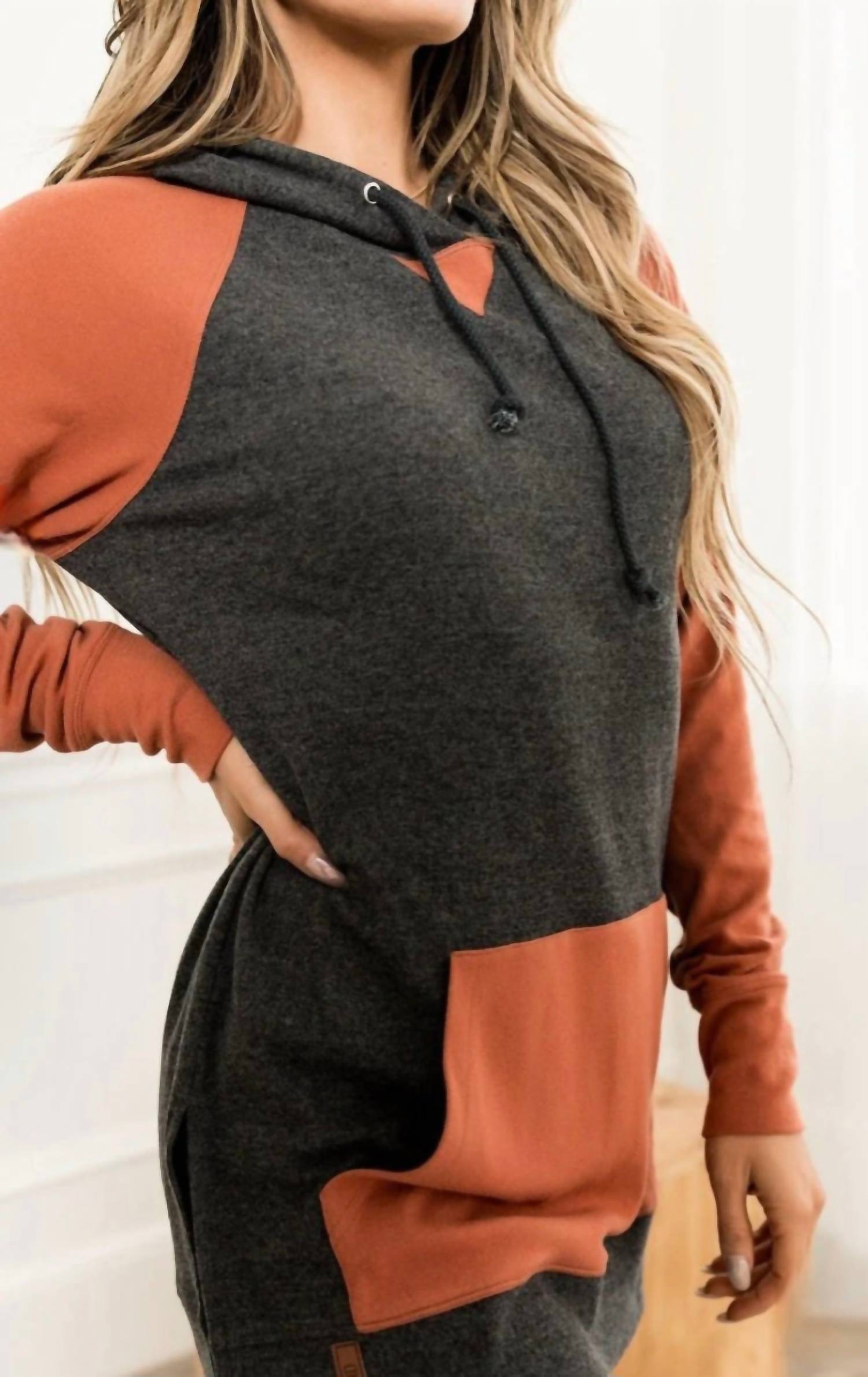 Whether you're running around town or lounging at home, this sweatshirt works for both. Introducing the Sideslit Hoodie by Ampersand Ave, a cozy staple for the fall season in a striking Golden Autumn hue. This long sleeve hoodie, composed of 60% polyester, 35% cotton, and 5% spandex, features a super soft and stretchy design. It includes practical details like a front kangaroo pocket, wide cuffs, a deep side slit, and a hood lined with coordinating fabric. With a pull-on closure, this piece runs true to size, offering a long and slim fit.