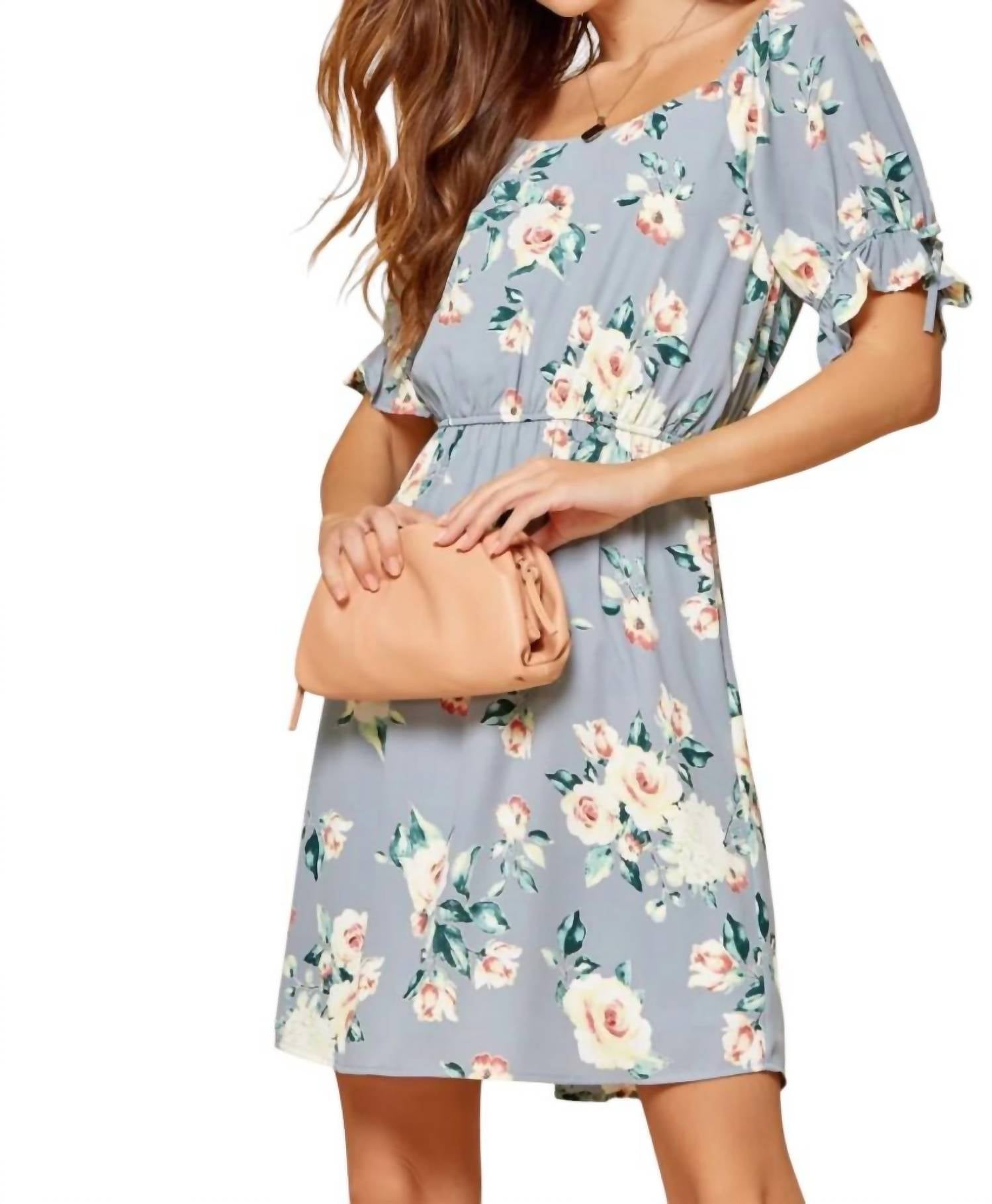 This beautiful floral printed dress features a boat neck, puff sleeves, and elastic at the waistline for a fit-and-flare bodice. It is fully lined and made from 100% polyester.