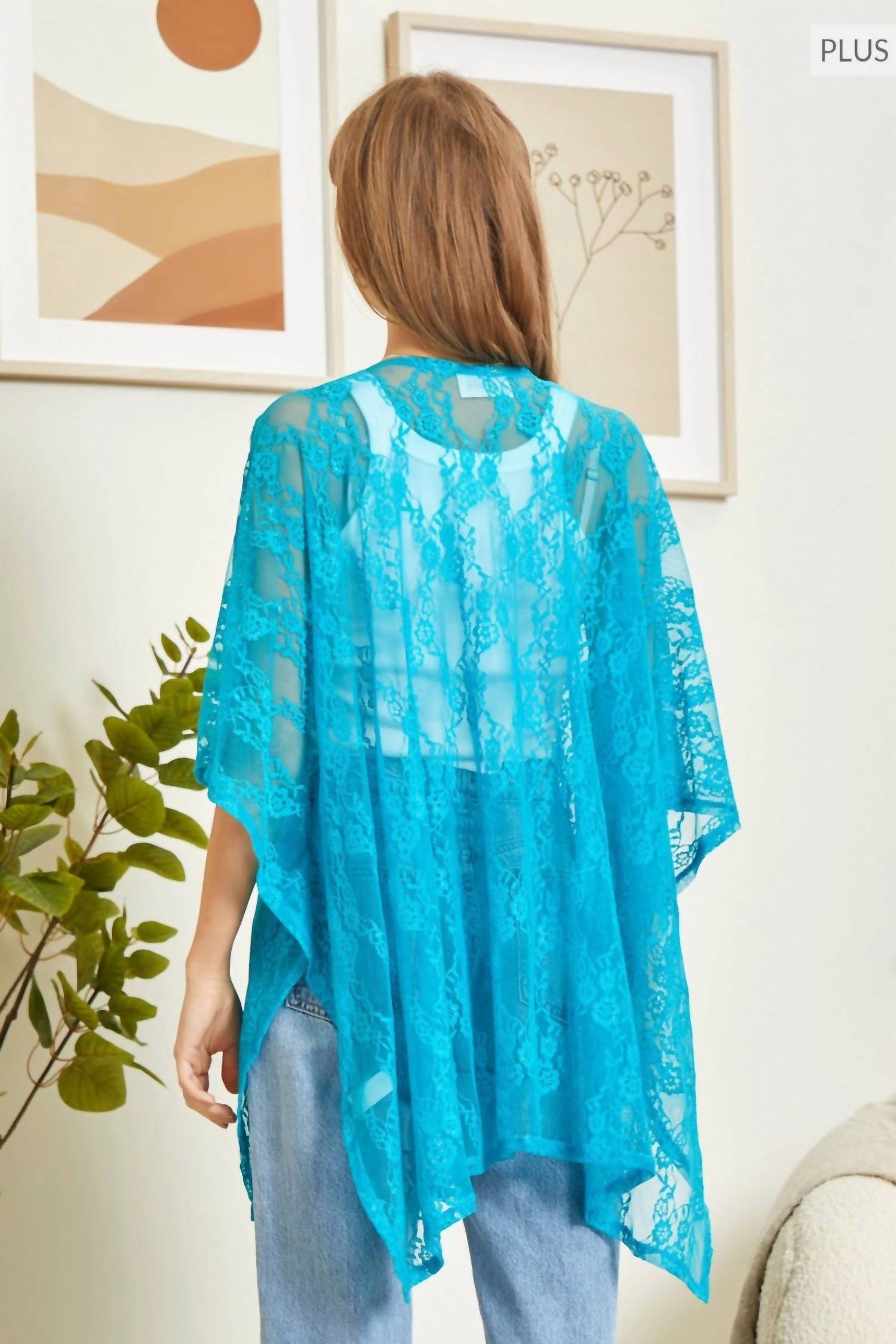A classic fit that works just as good buttoned as it does left open. Discover the Embroidery Kimono by ANDREE BY UNIT, perfect for your summer beach days in a stunning teal hue. This textured, boho chic cardigan features three-quarter kimono sleeves and a versatile pull-on style with an open front. Crafted from a 90% nylon and 10% spandex blend, its V-neck design ensures both comfort and style. Please note that this is a plus-size garment, ideal for embracing effortless elegance.