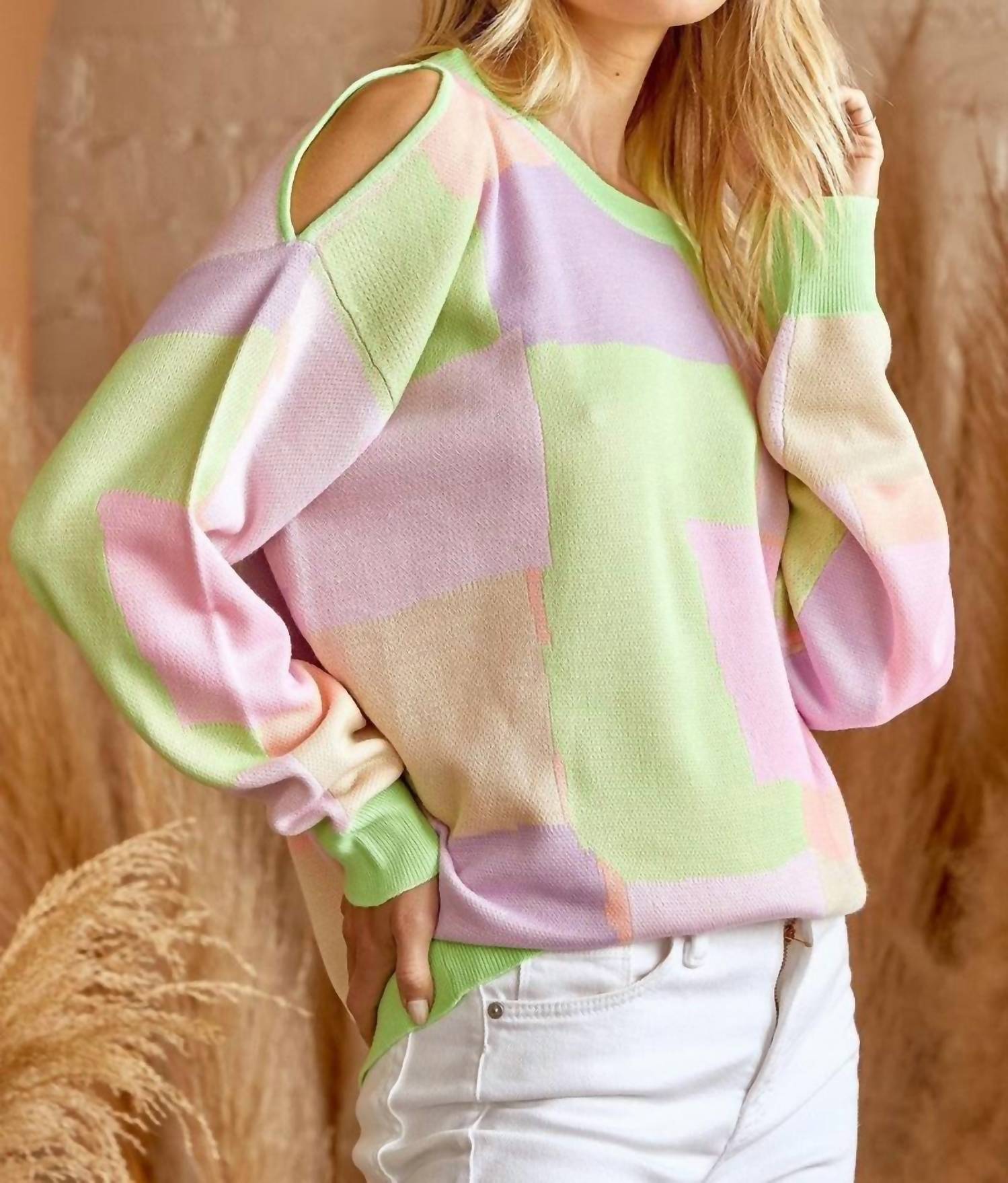 Andree By Unit - Color Block Sweater With One Shoulder Bodice