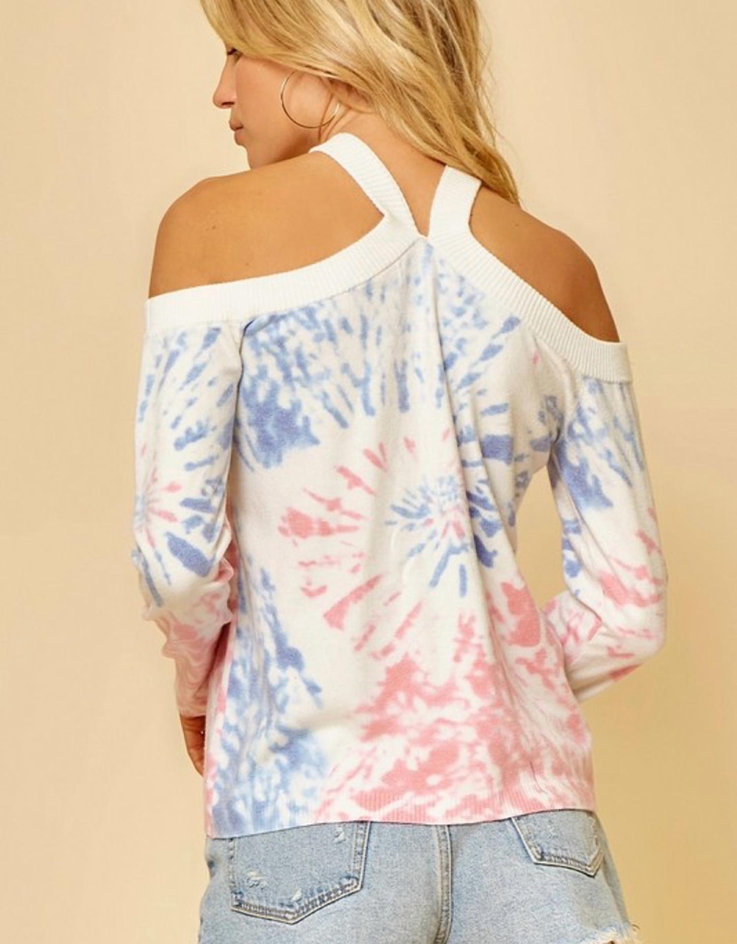 A timeless v-neck sweater that works season after season. Discover the Criss Cross Neckline Sweater by ANDREE BY UNIT, an elegant piece with a trendy tie-dye pattern that adds a pop of color to any wardrobe. This long-sleeve sweater is crafted from a soft and durable nylon blend comprising 52% Rayon, 29% Polyester, and 19% Nylon. Featuring a chic criss-cross halter neckline, it offers a stylish twist on the classic V-neck design. Closure type: Pull on, ensuring ease of wear for everyday comfort.