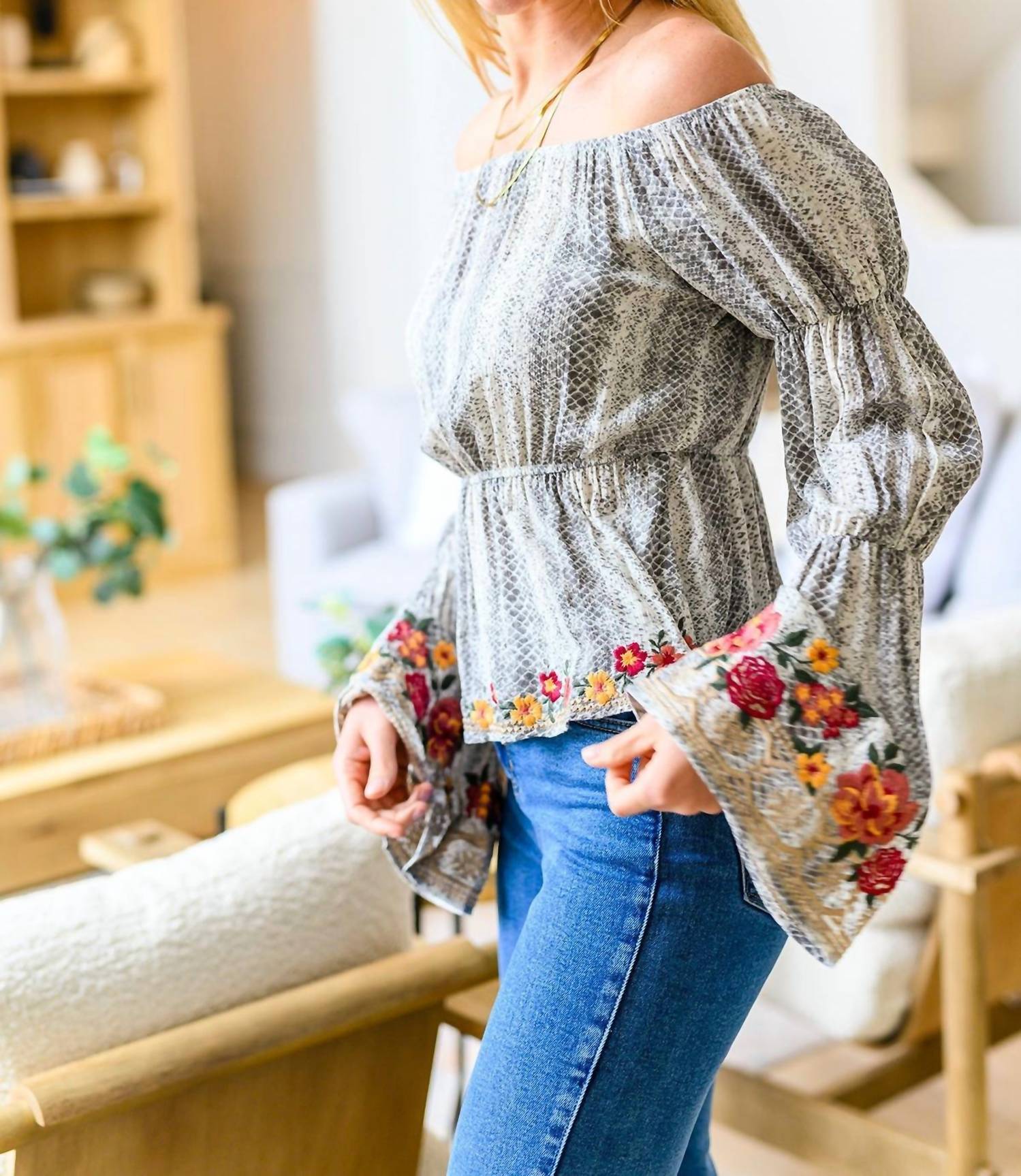 Crinkle Woven. Elastic Neckline, Waistband, and Sleeve Bands. True Embroidery. Peplum Silhouette. 100% Rayon. True to Size.