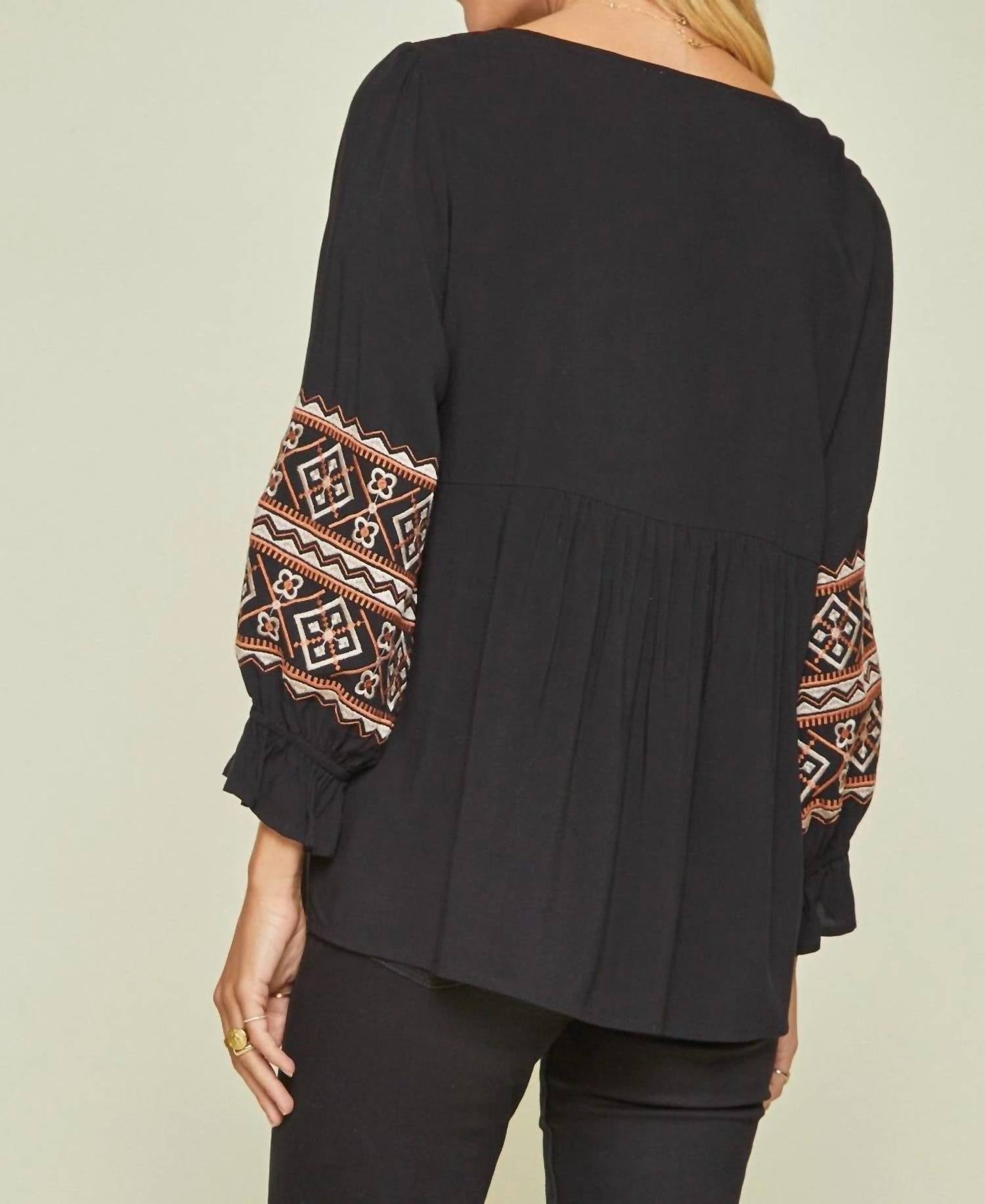 Andree By Unit - Aztec Embroidered Babydoll Top