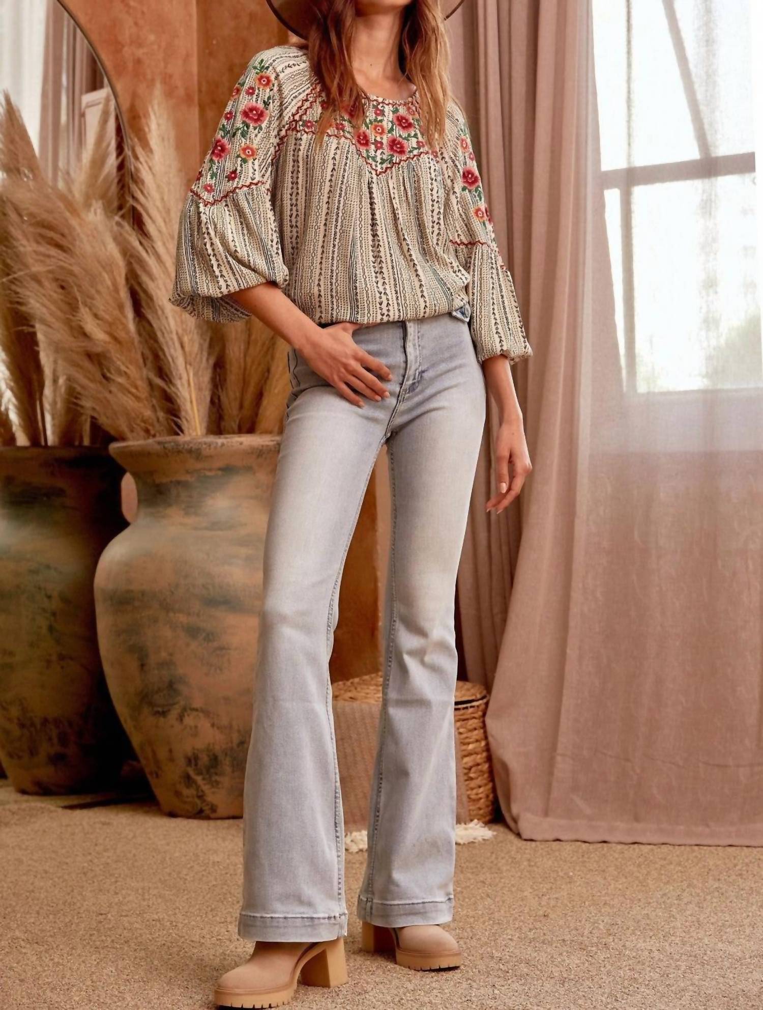 Andree By Unit - Floral Embroidered Printed Blouse