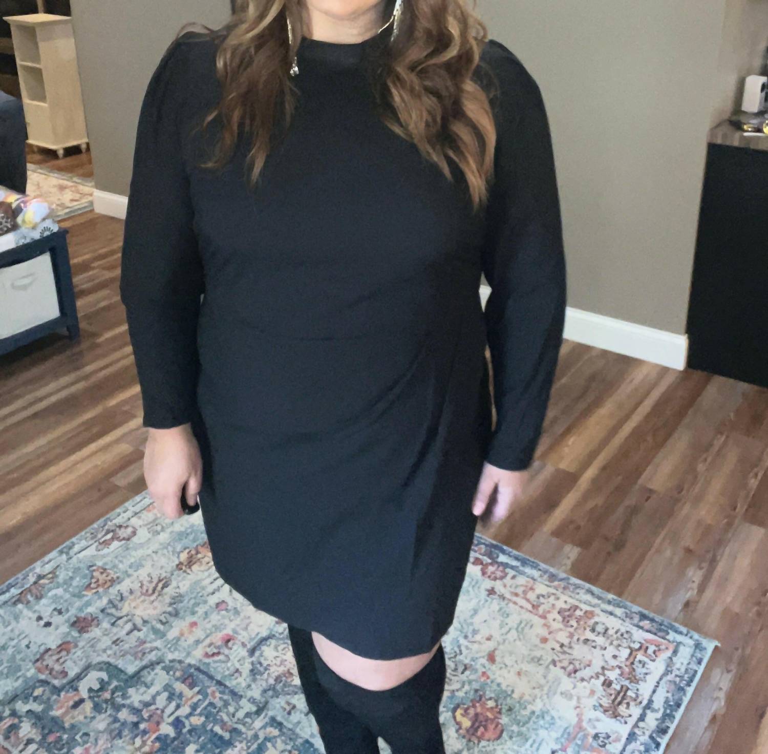 The kind of easy and flattering dress you'll be reaching for all season long. Introducing the Solid Woven Dress by ANDREE BY UNIT, a perfect choice for your holiday party ensemble. This chic black dress features a sheath silhouette with a sophisticated mockneck and long sleeves, exuding preppy charm. Crafted from 100% polyester, it offers a comfortable fit and a non-sheer, woven texture. Closure: Pull on with a zipper closure at the back. Made for fall occasions, this dress is ideal for adding a touch of elegance to your wardrobe.