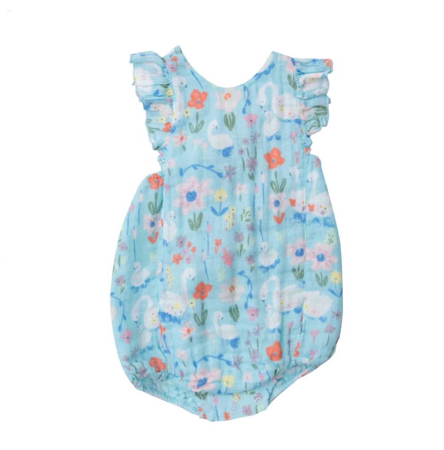 The Baby Girl's Floral Swan Sunsuit by ANGEL DEAR is a charming and practical choice for summer adventures. Made from lightweight and breathable 100% Cotton Muslin, this bodysuit ensures comfort in warm weather. Featuring a delightful graphic pattern of elegant swans in a lovely blue hue, it embraces a preppy and adorable vibe. Care for this piece is easy with machine wash and line dry instructions, making it perfect for vacation days.