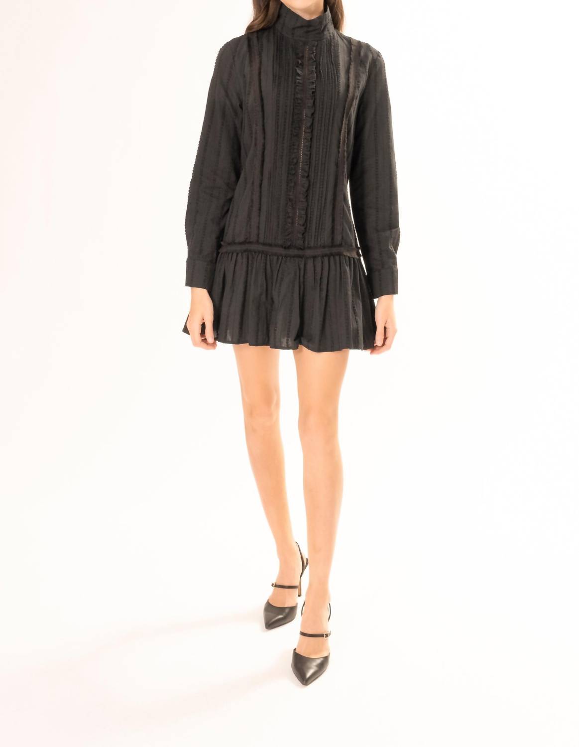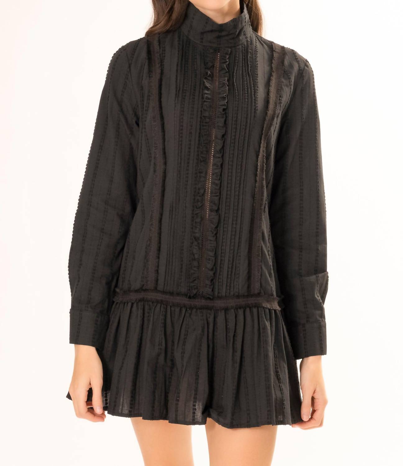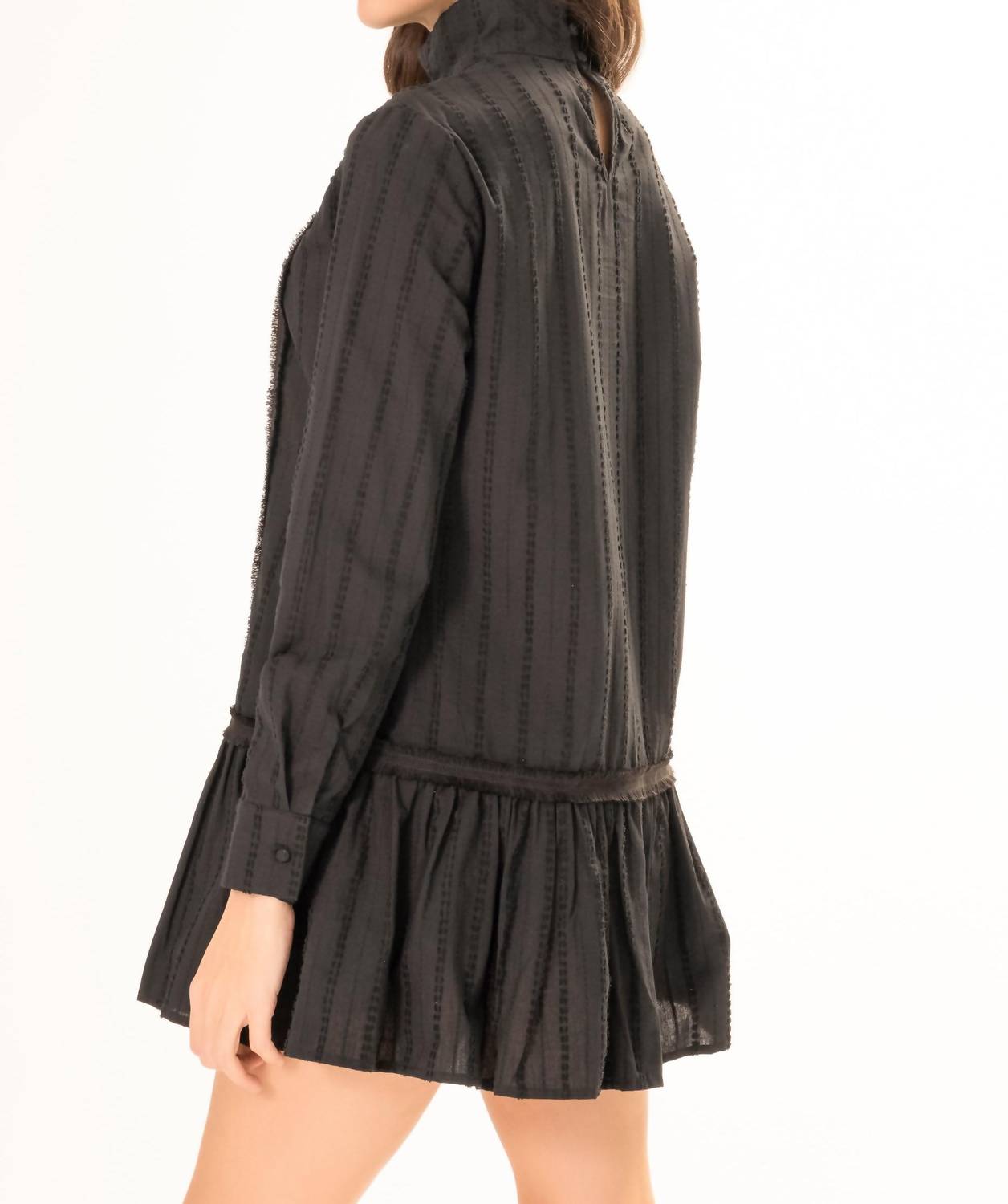 The perfect mini dress for those warmer months. Introducing the Sara Mini Dress by Area Stars, a timeless piece exuding elegance and charm. Crafted from quality cotton, this shift dress features long sleeves and a sophisticated mockneck, perfect for a minimalist, holiday party look. Its pull-on design offers ease and effortless style, with a flattering drop waistline for an added touch of femininity. Ideal for fall gatherings, this black solid mini dress transitions seamlessly from daytime to evening occasions.