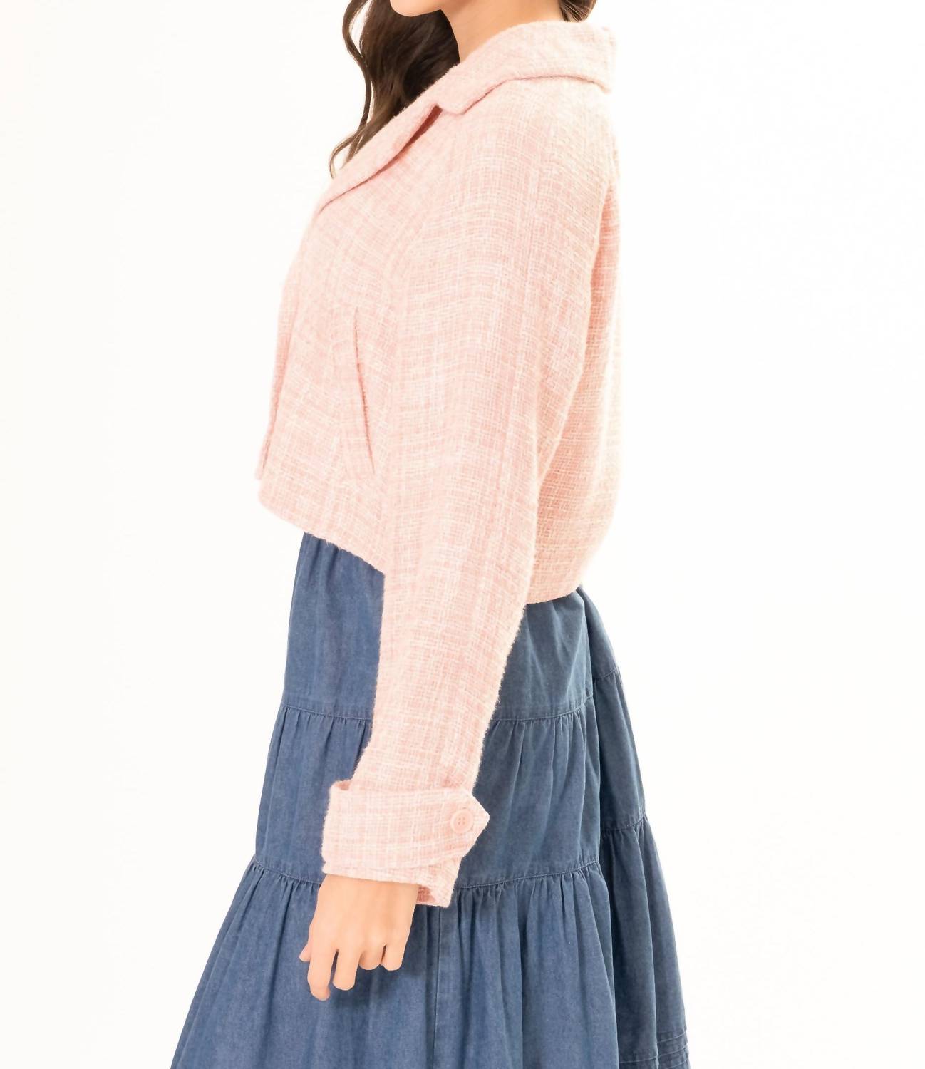 A jacket so versatile you can literally wear it with anything. Elevate your wardrobe with the Ursula Crop Jacket by Area Stars, a modern twist on the timeless tweed jacket. This women's casual jacket in a fresh pink hue features long sleeves and a sophisticated double-breasted button closure for a refined look. Crafted from luxurious tweed, its chic cropped silhouette offers both elegance and versatility, perfect for any spring occasion, from office settings to Easter celebrations. Designed for ultimate style, this jacket is best cared for with dry cleaning.