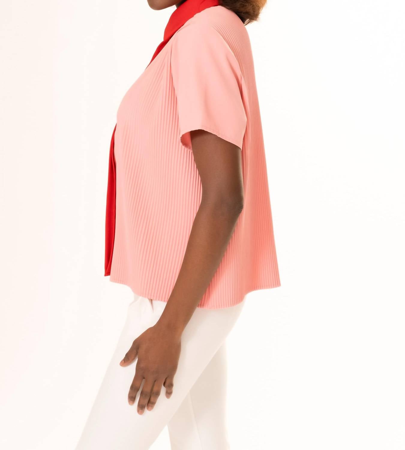 A timeless blouse that will never go out of style. Introducing the Trini Collar Blouse by Area Stars, a preppy piece in pink with a timeless stripe pattern. This blouse features short sleeves and a crisp contrast trim collar for a polished touch. Crafted from lightweight, breathable fabric, it ensures comfort and style for both work and casual outings. Closure: Button closure. Care: Dry clean only. Perfect for spring vacations and Easter celebrations.