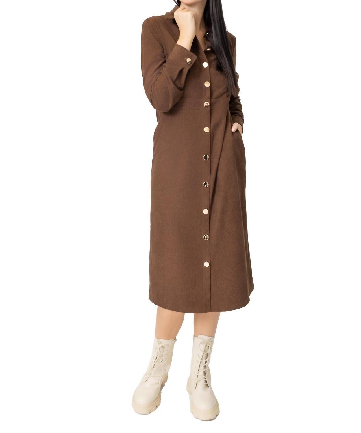 A flattering yet comfortable dress you'll be reaching for season after season. The Dion Midi Dress by Area Stars combines classic style and comfort with its long sleeves and solid brown cotton fabric. Designed in a shift silhouette with a collar neckline, this dress is perfect for any evening event or workwear occasion. It features convenient pockets and a secure button closure. For best results, hand wash this dress and lay it flat to dry.