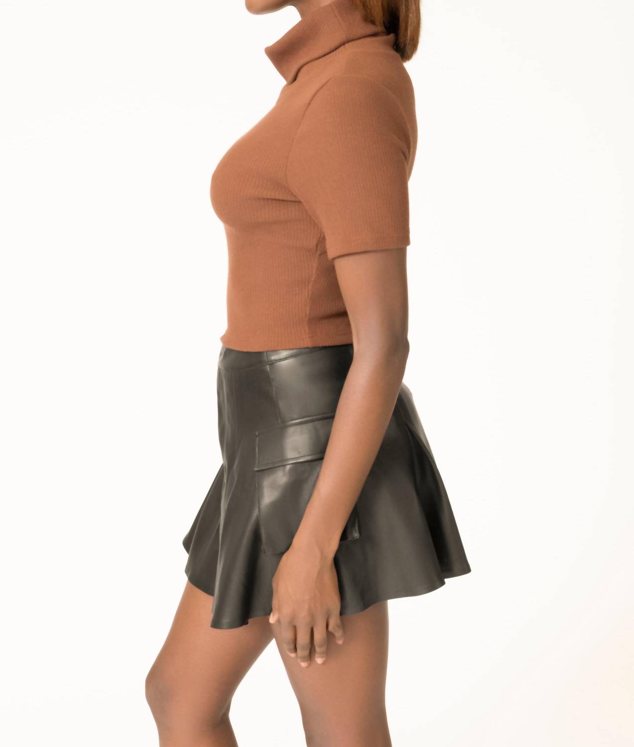 The short sleeve tee you'll want in every color. Meet the Anne Turtleneck Top from Area Stars, a chic brown essential perfect for any wardrobe. With its short sleeves and 43% Viscose,19% Nylon, 34% Polyester, 4% Elastane composition, this fitted and textured top offers both style and comfort. Featuring a sophisticated turtleneck, it's ideal for layering or wearing solo. Closure: Pull on. Care instructions include hand washing and laying flat to dry.