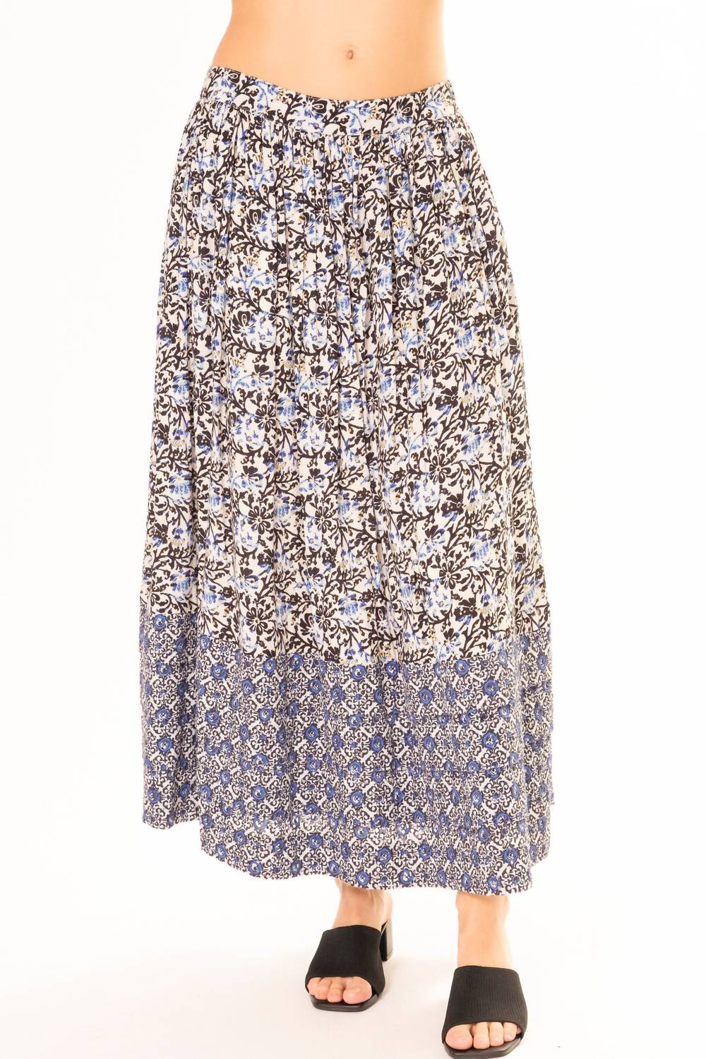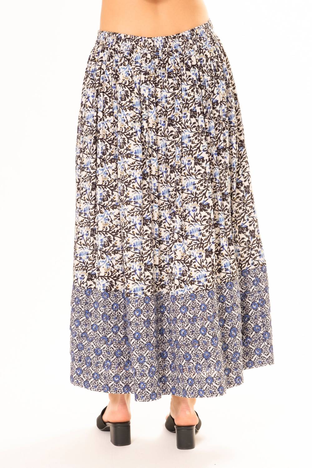 Show off just the right amount of skin in this beautifuly designed midi length skirt. Elevate your warm-weather wardrobe with the Area Stars Women's Vine Midi Skirt in a charming blue floral print. This piece features a tiered design that adds volume and an elasticized waistband with an adjustable drawstring for a flattering, comfortable fit. Crafted from 100% cotton, this skirt is breathable and perfect for summer vacations or Easter gatherings. Closure: Pull-on style. Care: Hand wash cold, line dry.