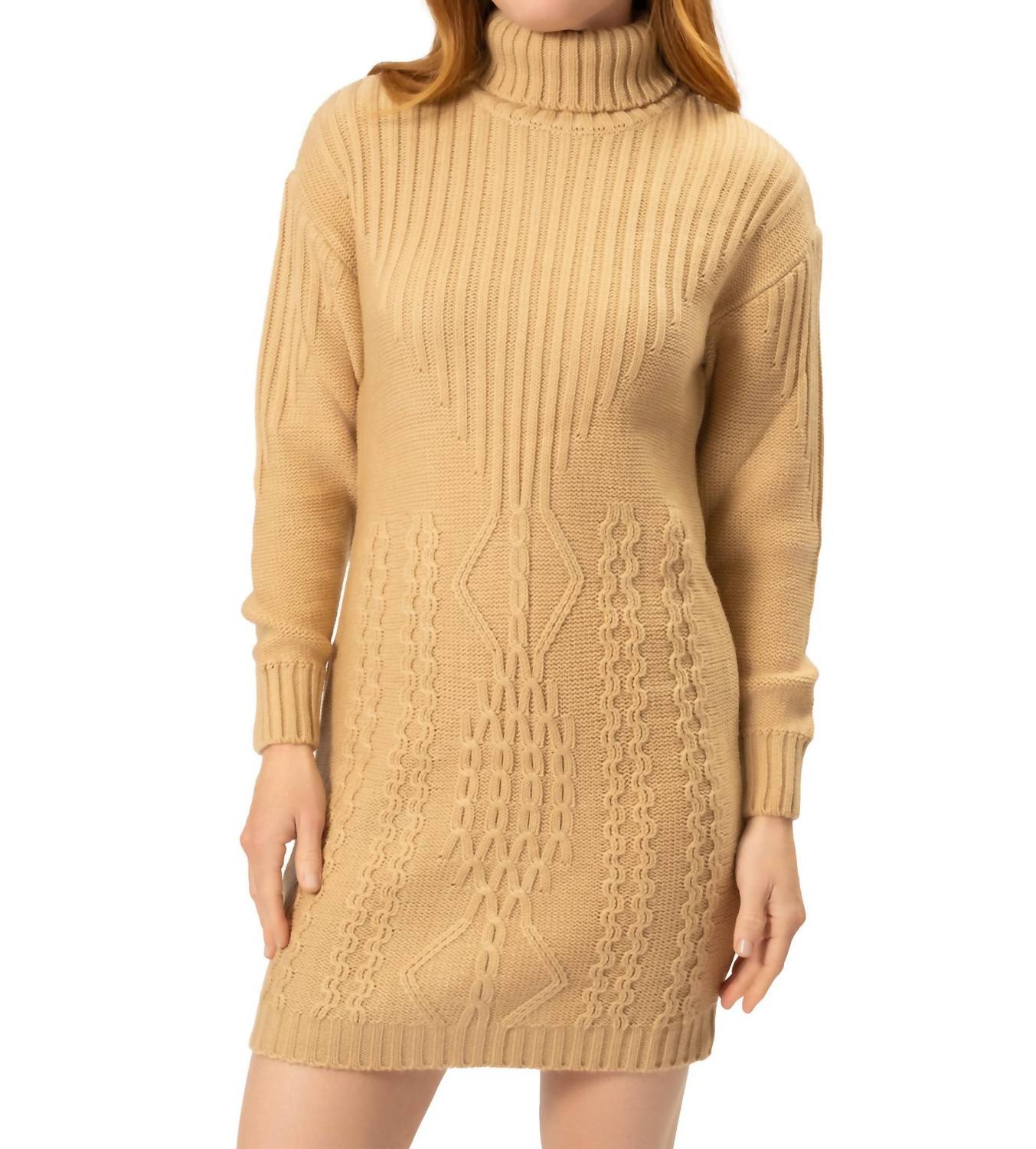 A flattering yet comfortable dress you'll be reaching for season after season. The Turtleneck Sweater Dress by Area Stars in tan is an elegant choice for a holiday party. With its long sleeves and minimalist textured pattern, this sheath silhouette offers a chic and cozy feel. Its turtleneck adds a classic touch, and the pull-on closure ensures ease of wear. Perfectly designed for the fall season, this dress will keep you stylish and warm.