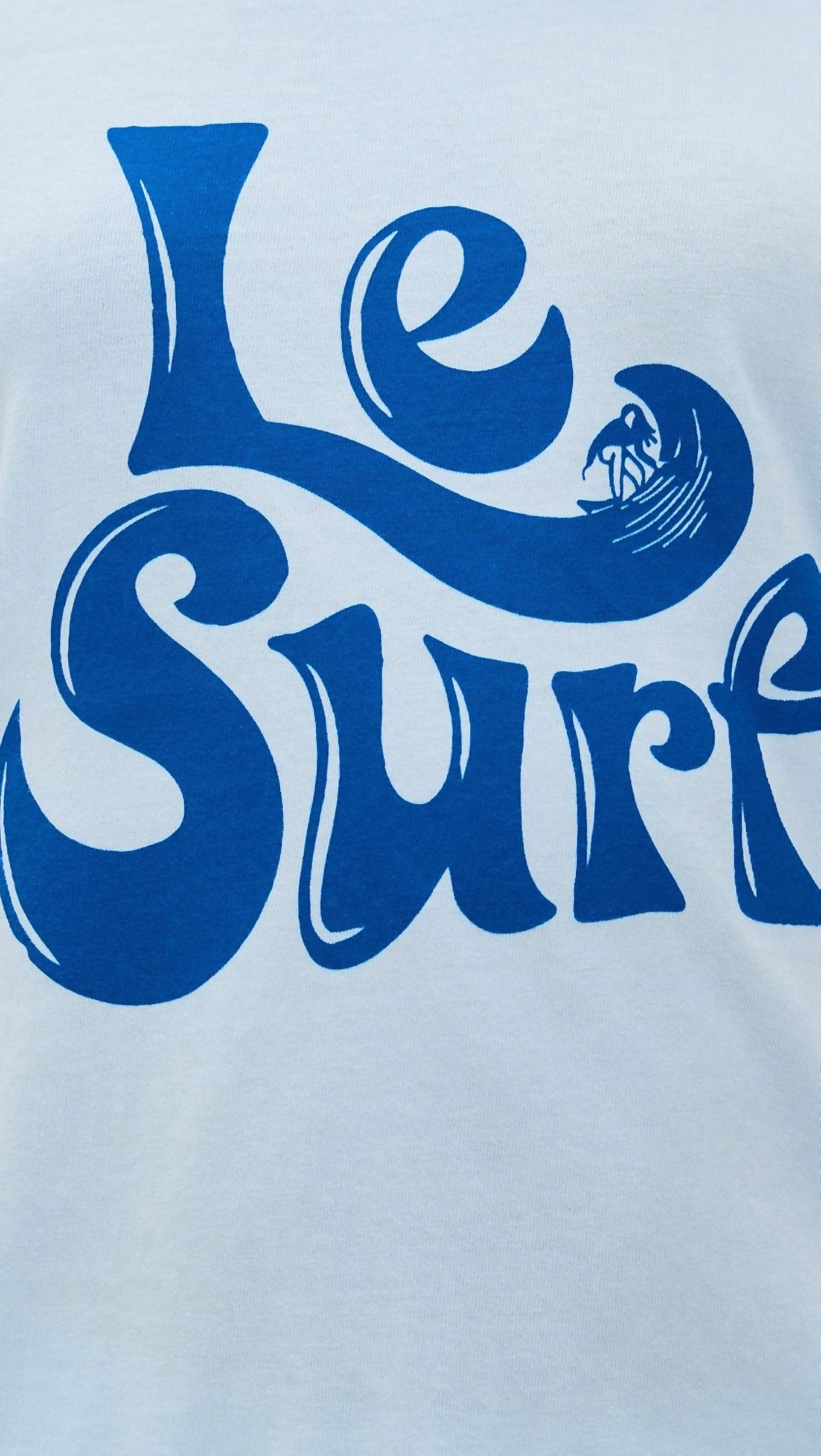 The short sleeve tee you'll want in every color. Elevate your summer wardrobe with the Le Surf Tee by ASKK NY, featuring a playful 'Le Surf' graphic on the front. Designed with short sleeves and a classic crew neck, this women's tee offers a relaxed fit in lightweight, low-stretch jersey. Made from 100% cotton, this blue top is perfect for a casual beach day and is proudly crafted in the USA. Closure: Pull on. Care: Machine wash cold.