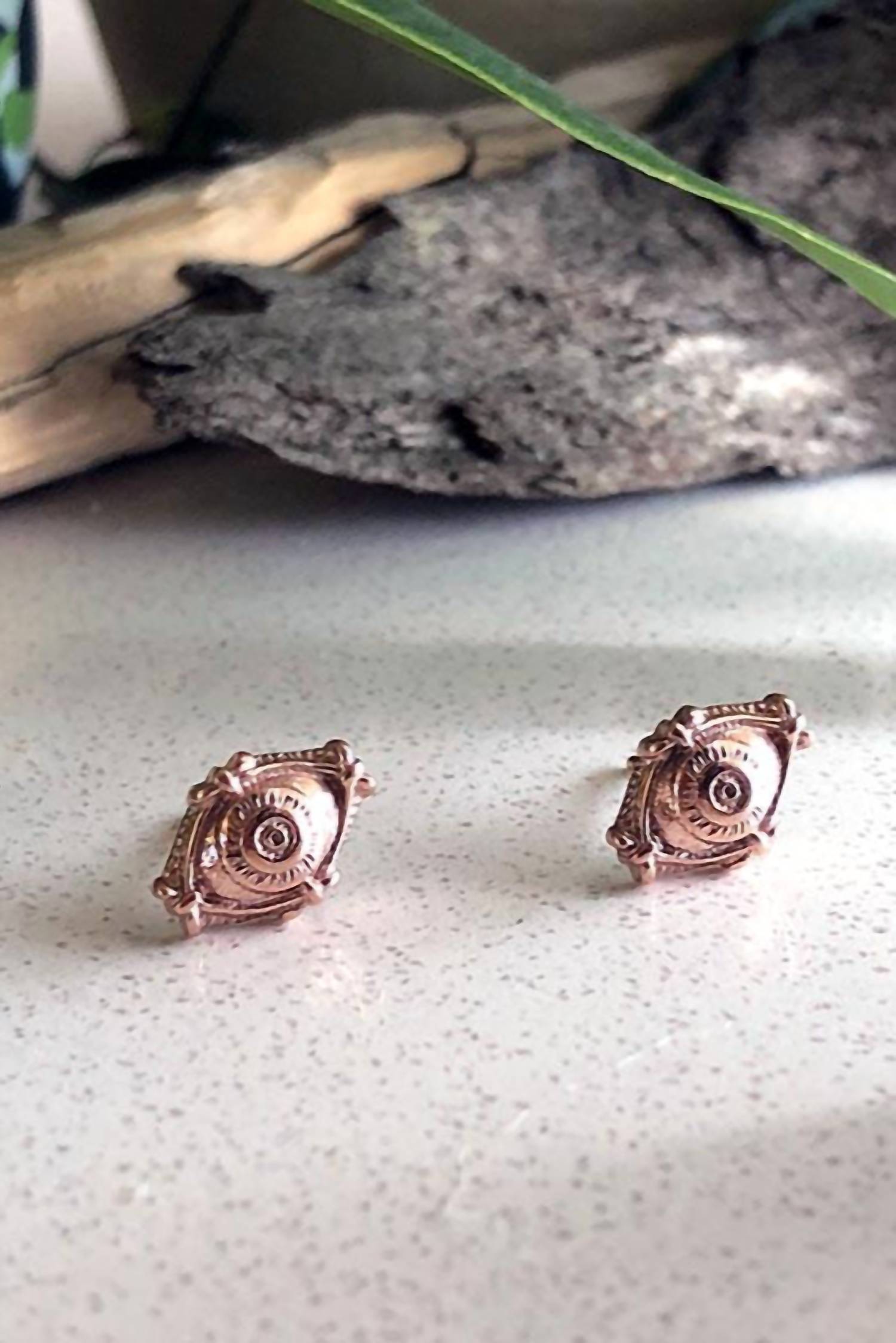 eye-catching earrings for every occasion. Elevate your ensemble with the Women's Eye Studs by Astor & Orion, exquisitely crafted in lustrous rose gold. These studs are made from 70% recycled stainless steel and are elegantly rose gold-plated for a timeless look. Measuring approximately 0.4 inches, they serve as a sophisticated accent whether styled with casual attire or paired with other jewelry. Ethically made, these fashion earrings combine sustainability with impeccable design.