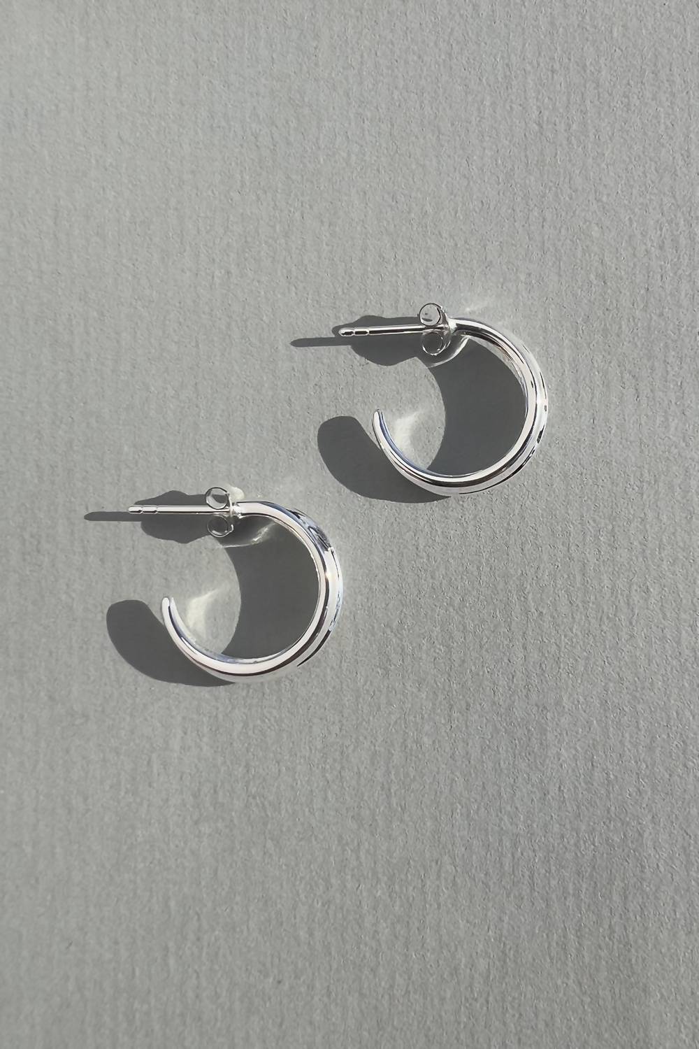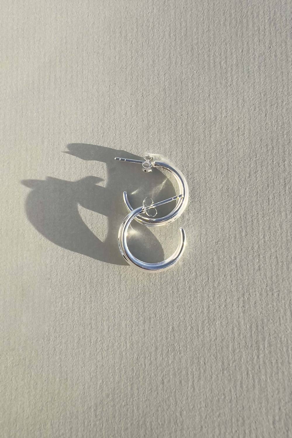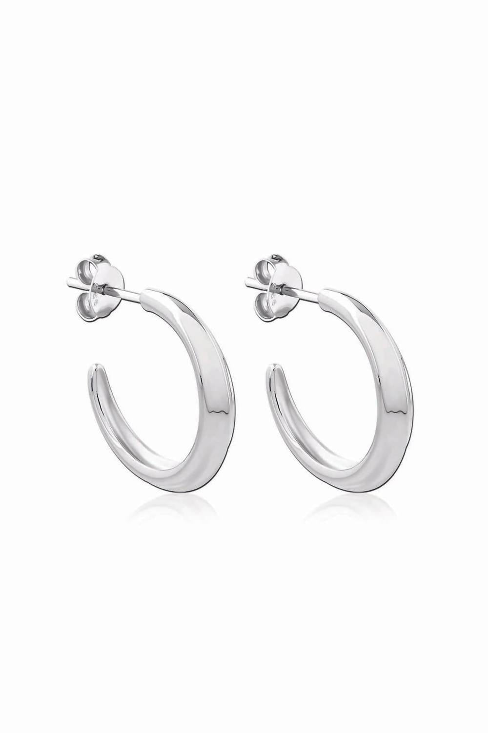 eye-catching earrings for every occasion. Discover the Crescent Small Hoops by Astor & Orion, a sleek addition to your jewelry lineup in a modern silver finish. Expertly hand-sculpted, these hoops measure 0.75 inches in diameter, offering a perfect blend of sturdiness and lightweight design for comfortable wear. Sustainably crafted from recycled .925 sterling silver, they reflect a commitment to ethical production with both people and the planet in mind. Available in a stylish silver tone that easily elevates any look.