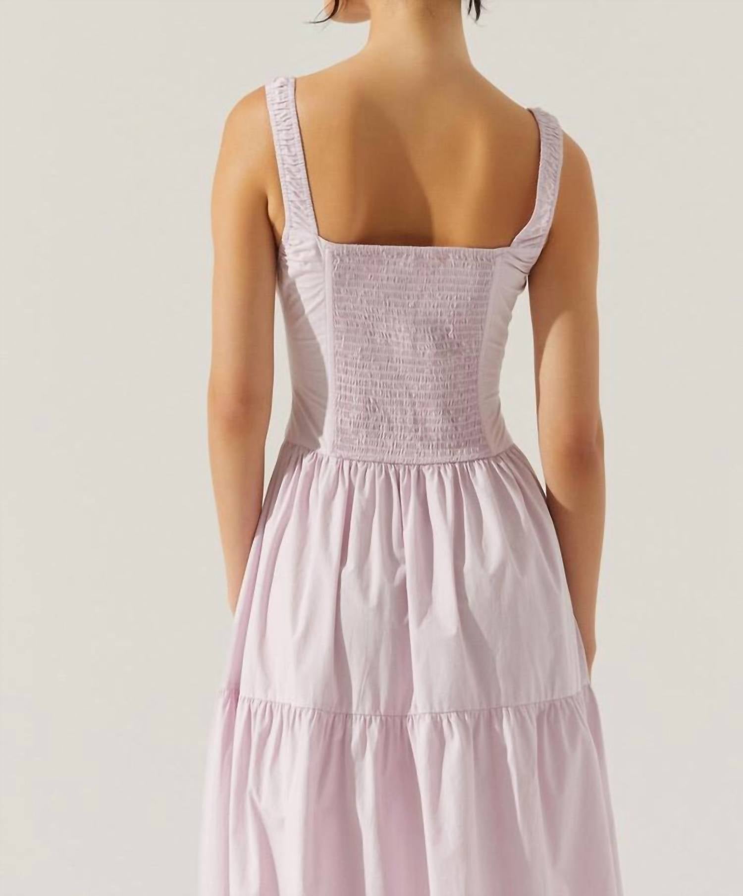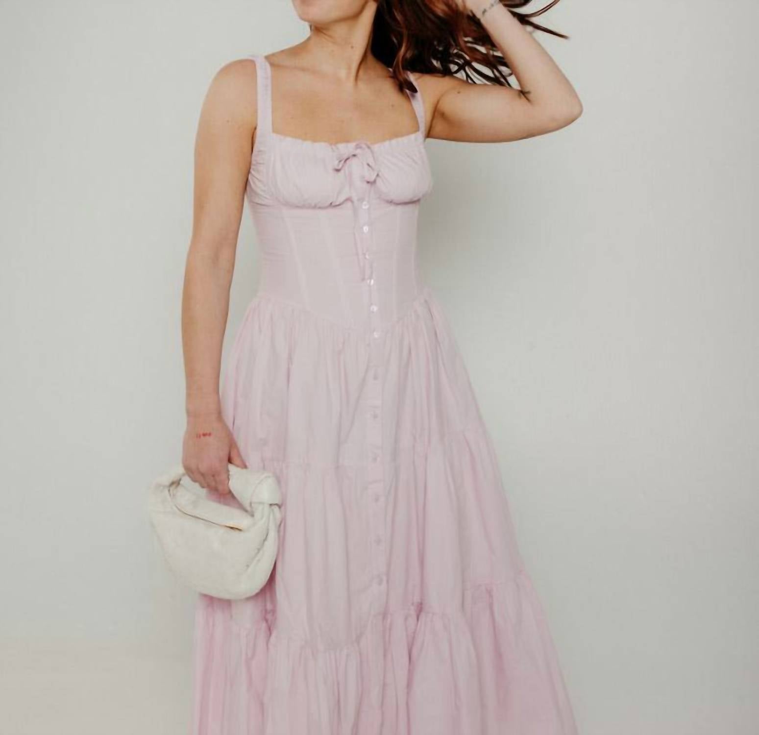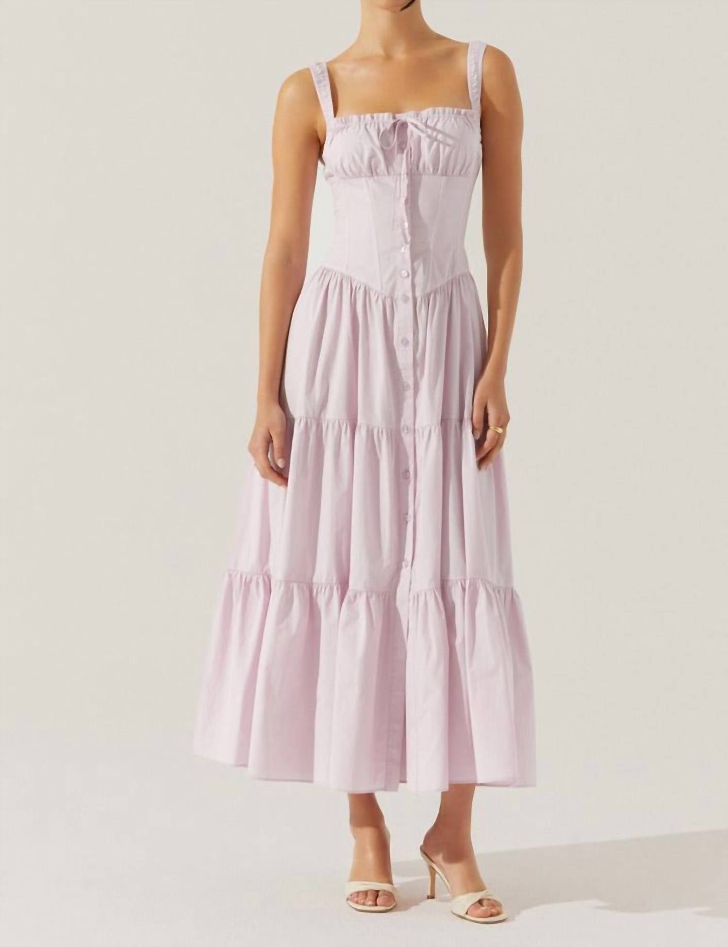 Cute and comfortable, this long sleeve dress has it all. Meet the Nicola Maxi Dress by ASTR, an elegant choice for your holiday party. This sleeveless, tiered milkmaid dress in solid black features a full button front closure and a flattering fit-and-flare silhouette. Made from 100% cotton, it offers comfort with elastic straps, a gathered bust with an adjustable tie, and supportive boning around the torso. This minimalist, sweetheart neckline dress is perfect for a spring season gathering, modeled here in size S by a 5'1" individual.