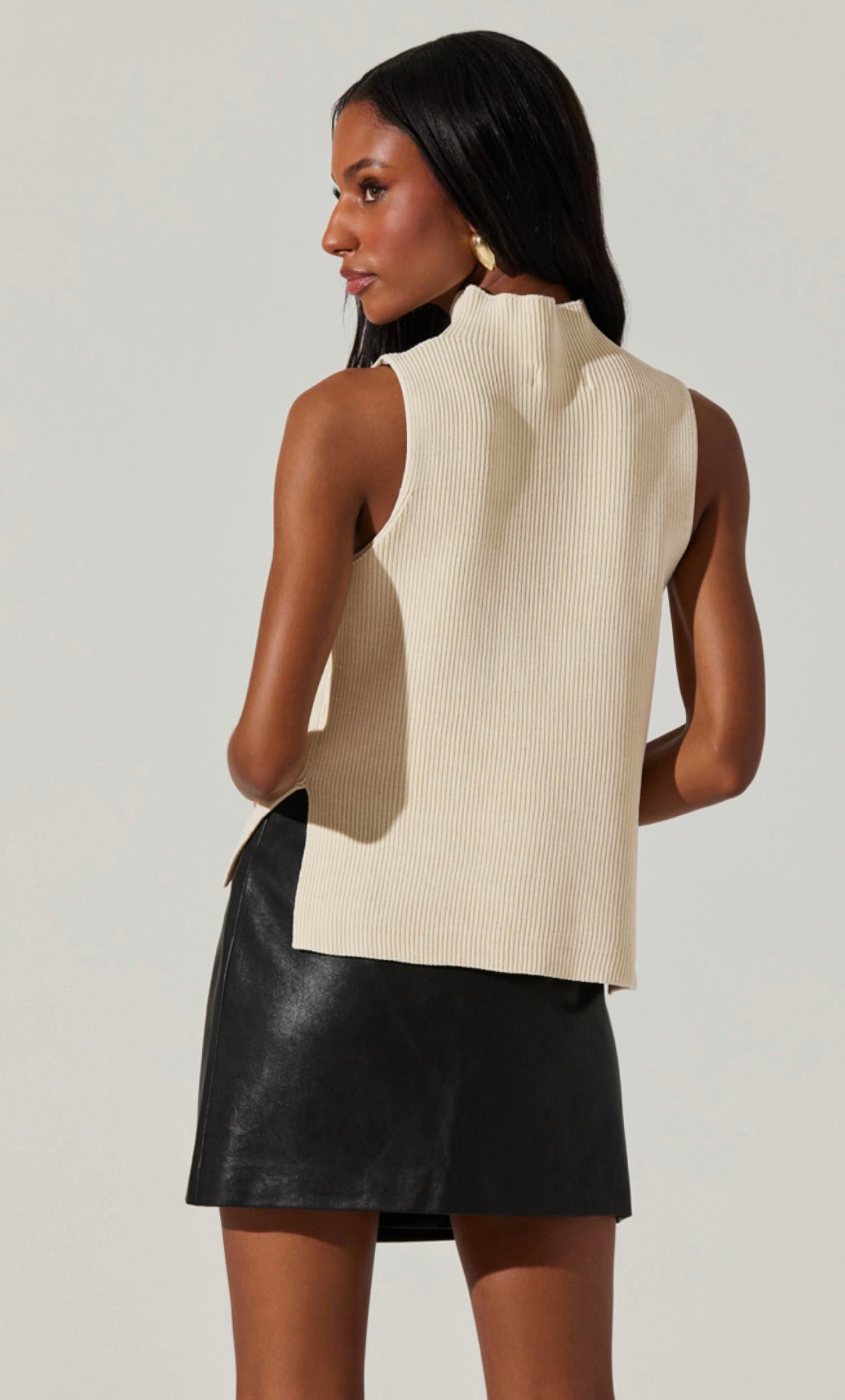 A classic staple that every closet needs. This mock-neck design boasts side slits at the bottom hem, offering a modern silhouette. Composition: 65% Viscose, 35% Nylon. Closure: Pull-on. Care: Dry clean only.