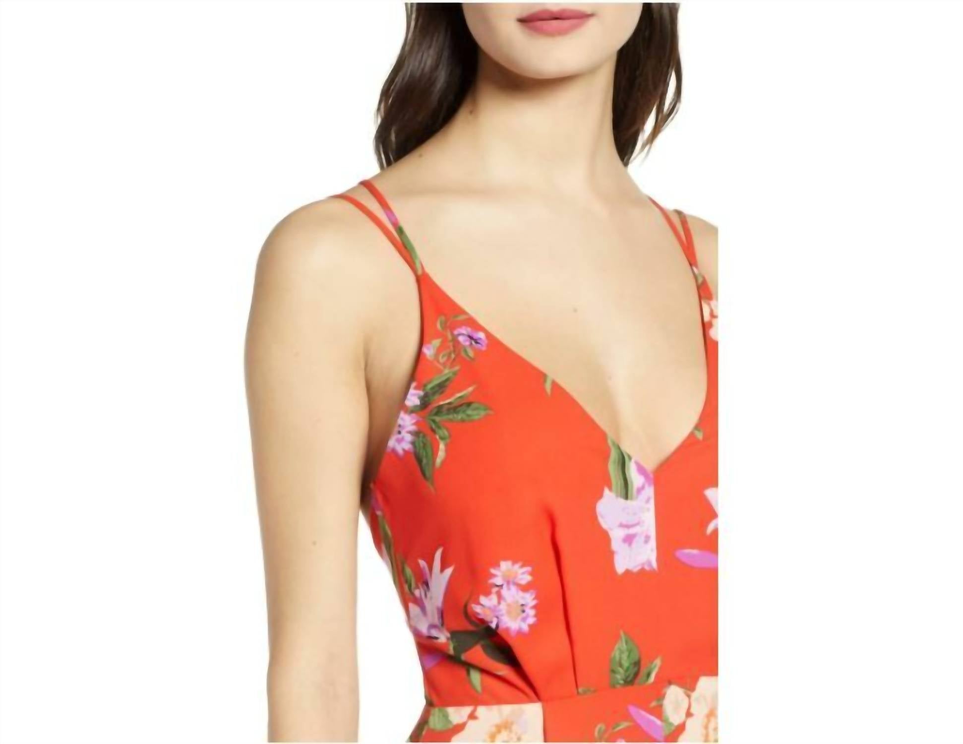 Unveil your fearless style with the ASTR The Label Floral Chiffon V Neck Strappy Back Wide Leg Jumpsuit. This striking red jumpsuit, crafted from 100% polyester, features a daring strappy back and an elegant silhouette that flows with every move. With a garment length of 60" and an inseam of 30.5", it offers a flattering fit accentuated by a 13" leg opening at the hip. Closure is achieved with a back hidden zip, while care is a breeze with the option to dry clean or hand wash and line dry. Measurements include a chest width of 17" and a waist width of 13.25", ensuring a sleek profile.