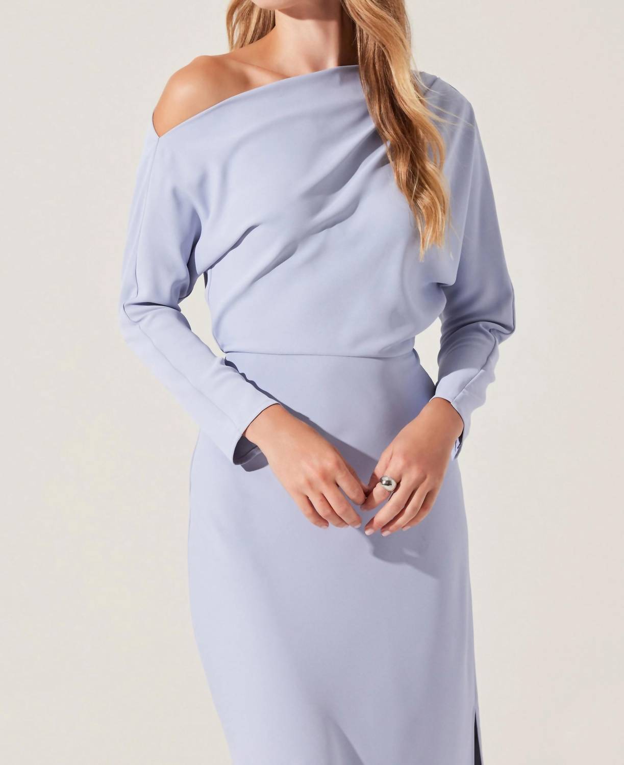 Who doesn't love a good maxi dress? This one you'll be reaching for season after season. Elevate your spring wardrobe with the Naida Maxi Dress by ASTR, designed in a pretty lavender/blue hue for a fresh seasonal look. This women's dress features a long sleeve, off-the-shoulder design, and a shift silhouette, perfect for dinner parties. Made as a pull-on style for easy wear, it combines style with practicality. Care instructions are not specified, ensuring you follow gentle washing routines to preserve its beauty.